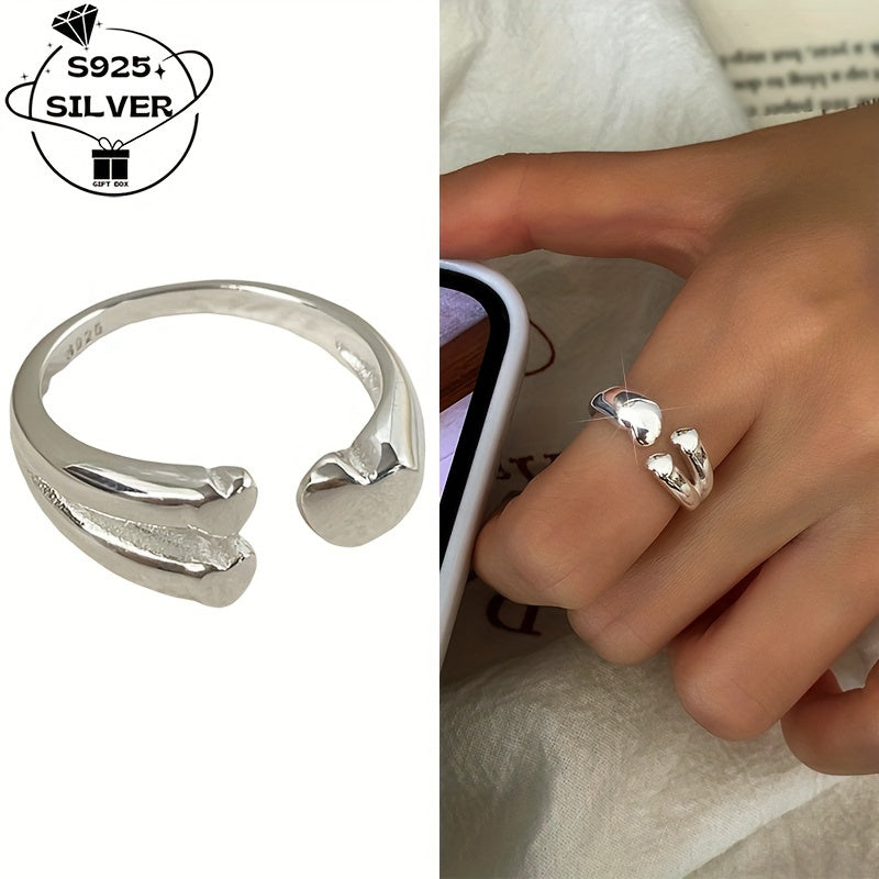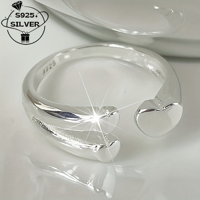 This elegant 925 silver ring features a double layer heart design, perfect for expressing love. Its minimalist style adds a touch of sophistication. The adjustable opening ensures a comfortable fit. Makes a meaningful Valentine's gift for your loved one.