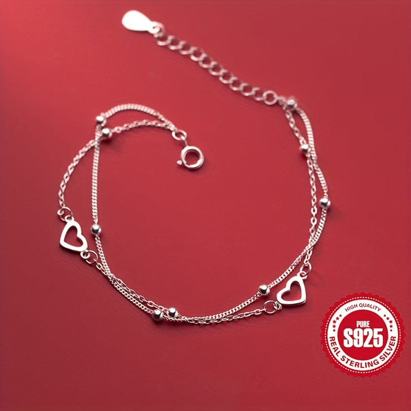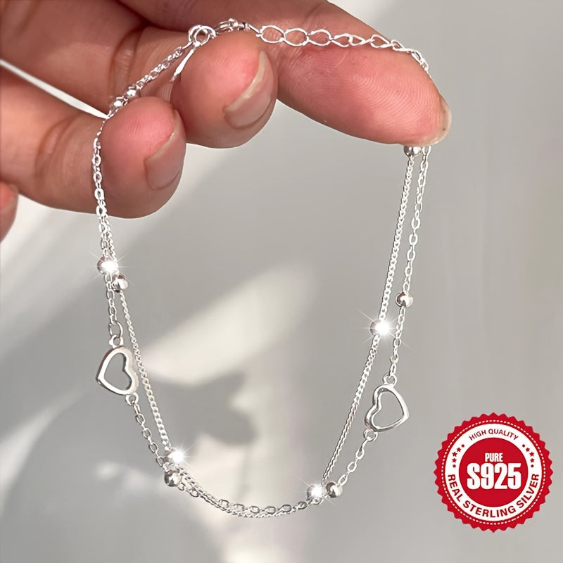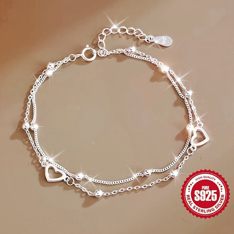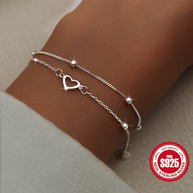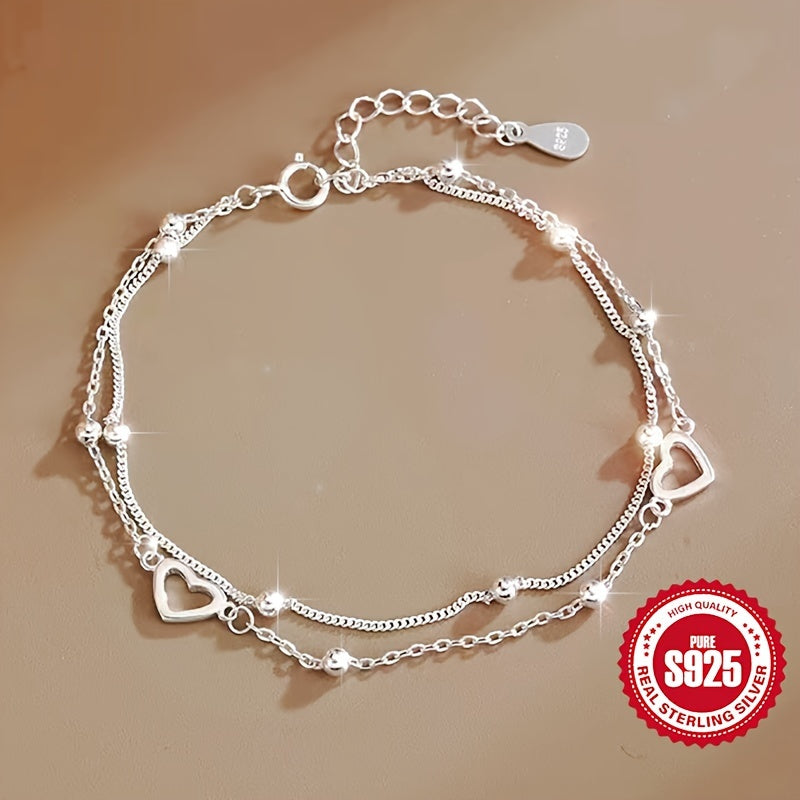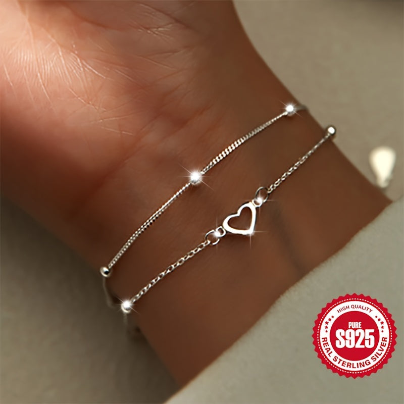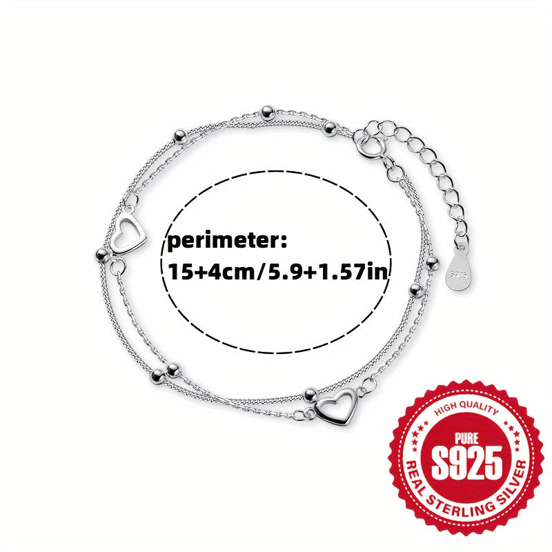 This double-layered pearl love heart bracelet is crafted from high-quality S925 silver, making it perfect for women's daily wear. It is a versatile accessory that can also be given as a gift to girlfriends.