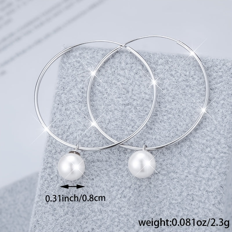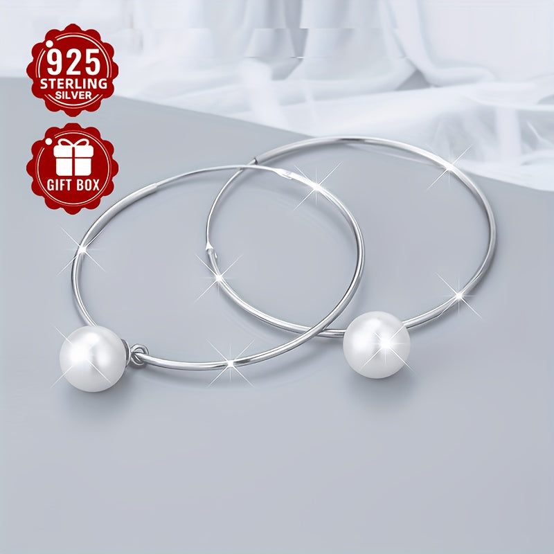 Beautiful and noble sterling silver earrings with imitation pearl, weighing about 2.3g in total.