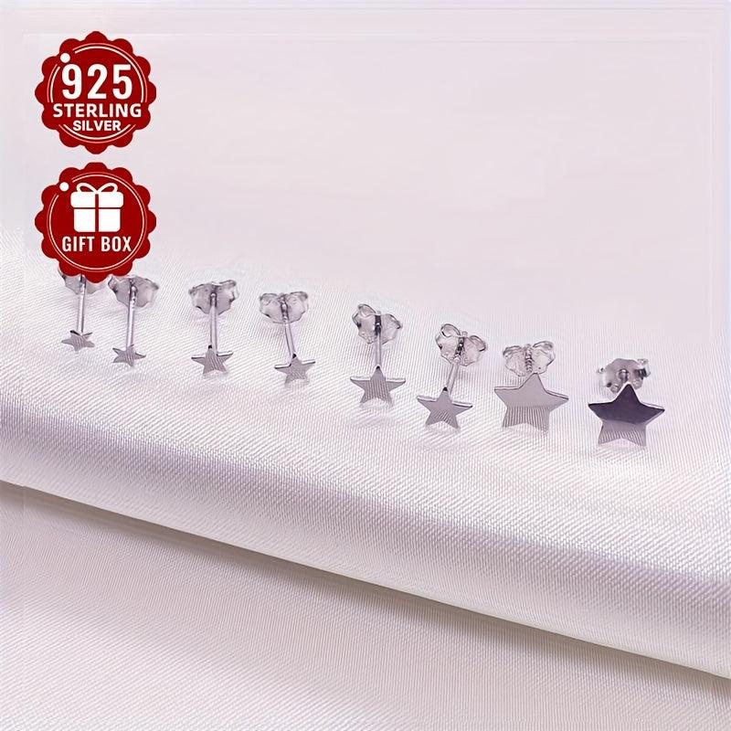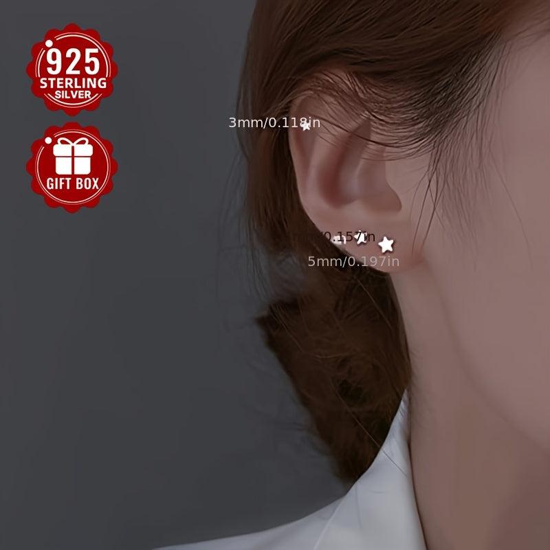 These stunning 925 sterling silver earrings featuring a five-pointed star design are a perfect gift for friends. Simple yet stylish, they add a touch of elegance to any outfit.