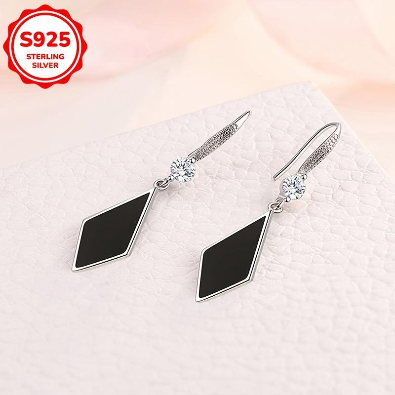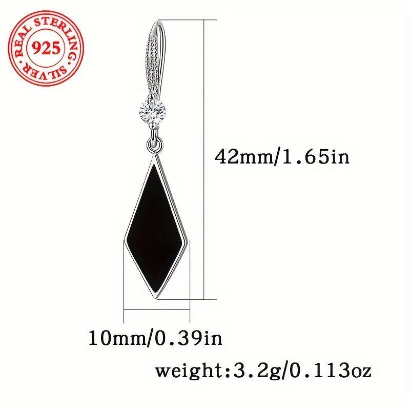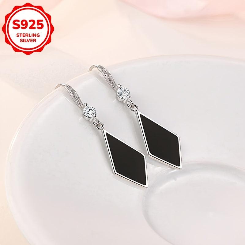 Fashionable Zirconia Rhombus Pendant Earrings 925 Silver 3.2g