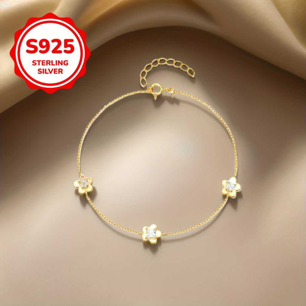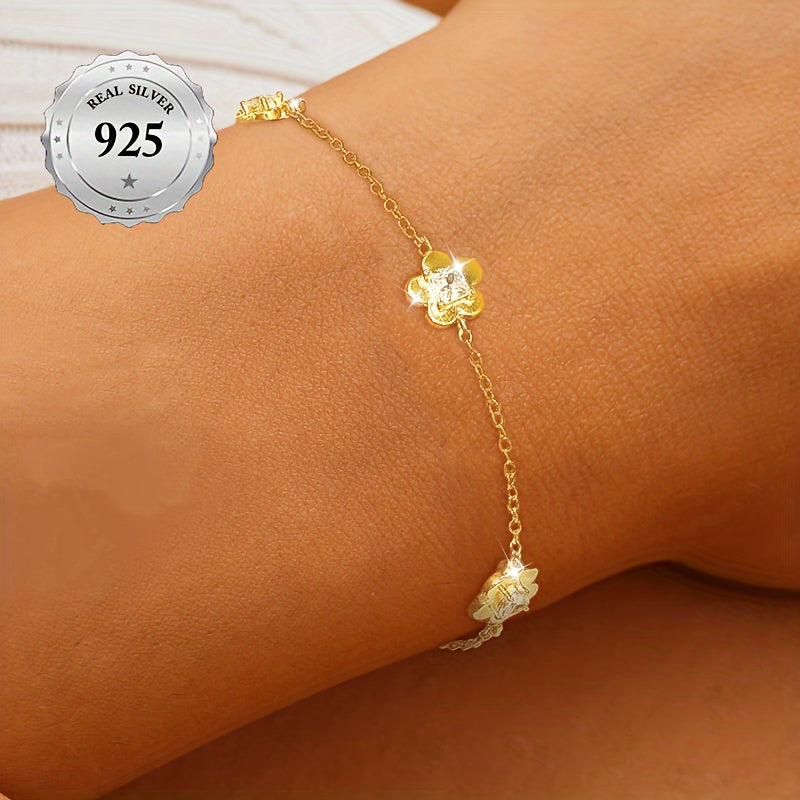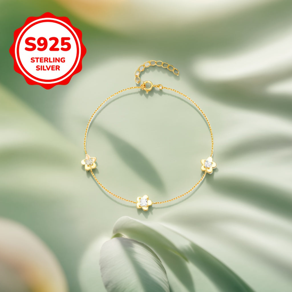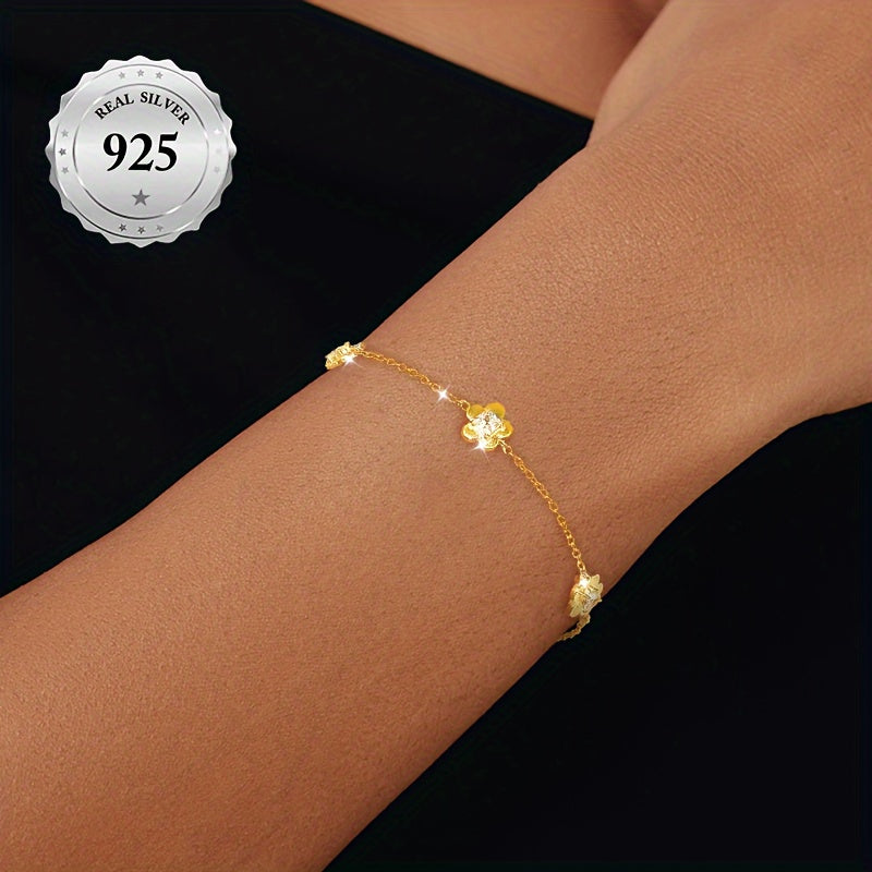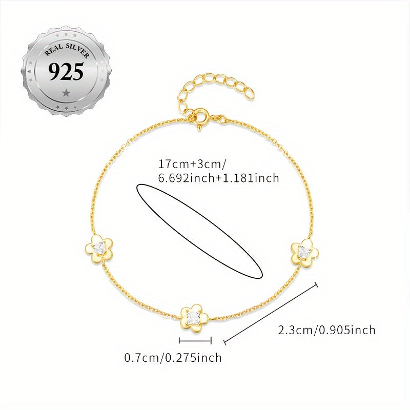 Add some bling and personality to your outfit with this stunning bracelet featuring a five petal flower and five leaf clover design. Made of high-quality S925 silver with solid square zirconium for a touch of elegance. Perfect for parties, dates, and special occasions.