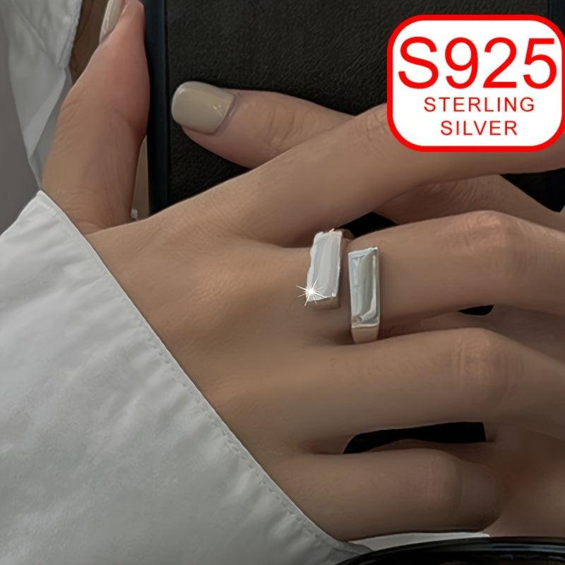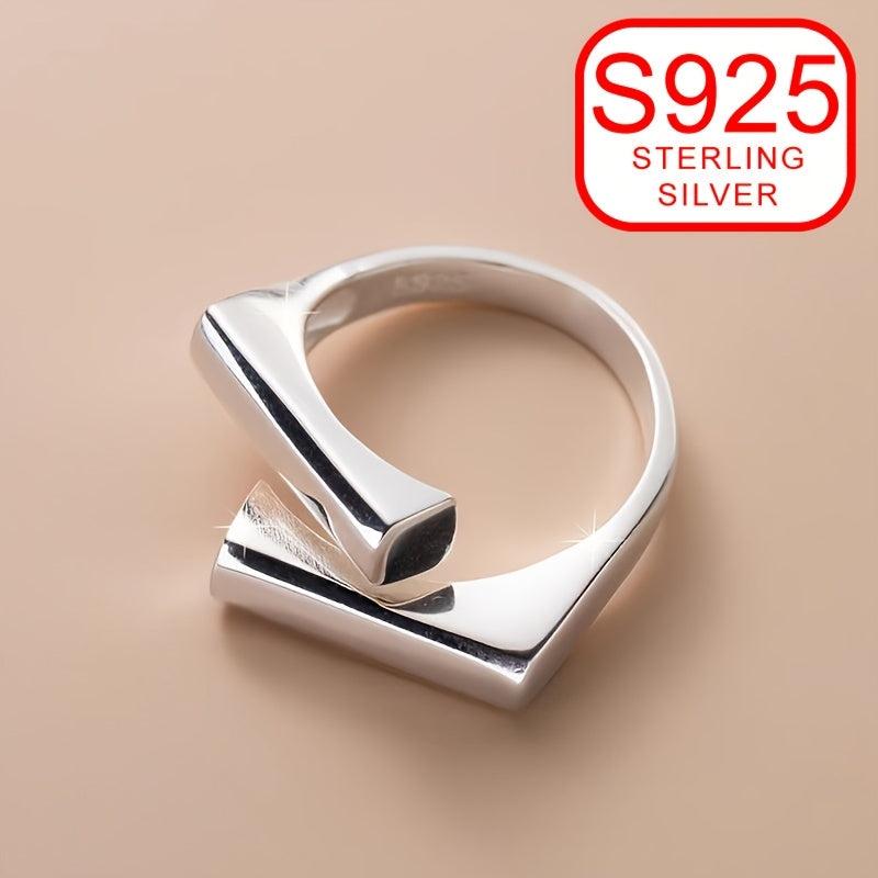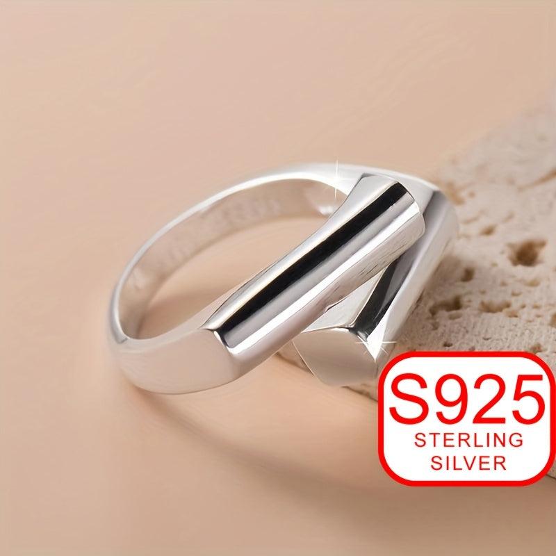 Geometric Interlaced Square Index Ring Women's S925 Silver Low Allergy Ring