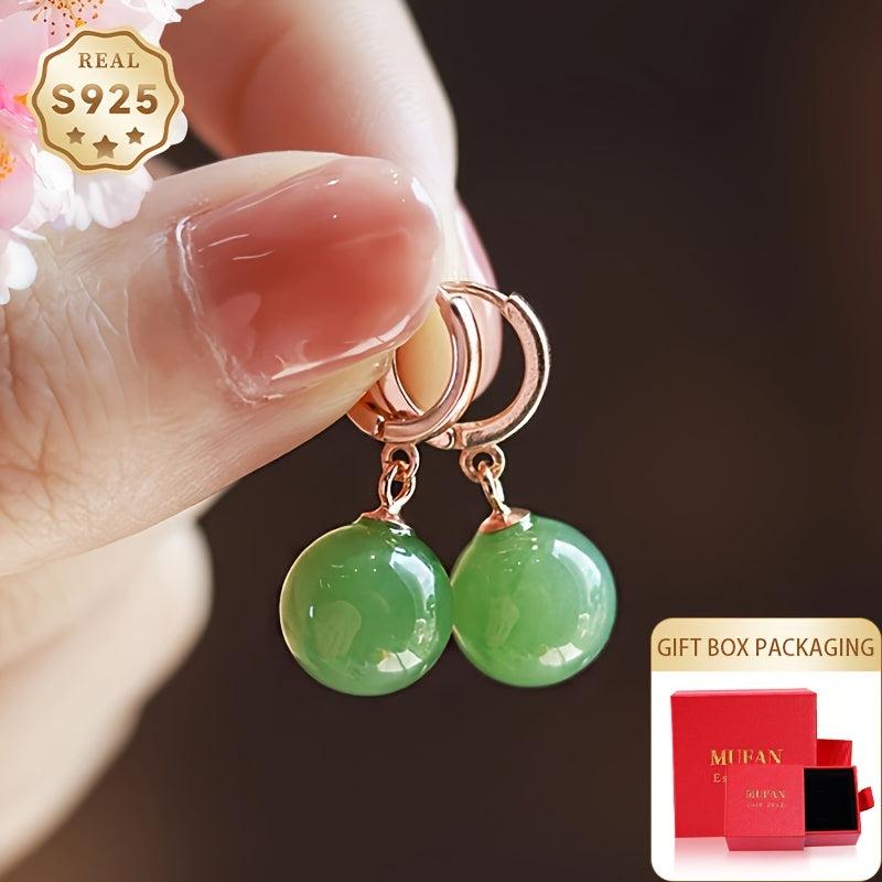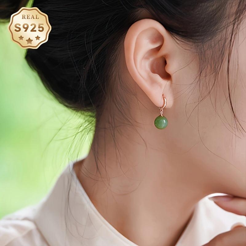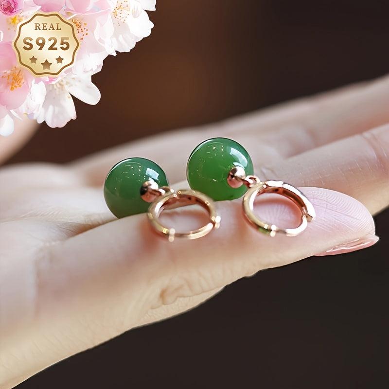 Elegant pair of earrings made of S925 silver with 9 10mm green round natural stones. Perfect for adding a touch of nature-inspired beauty to any outfit.