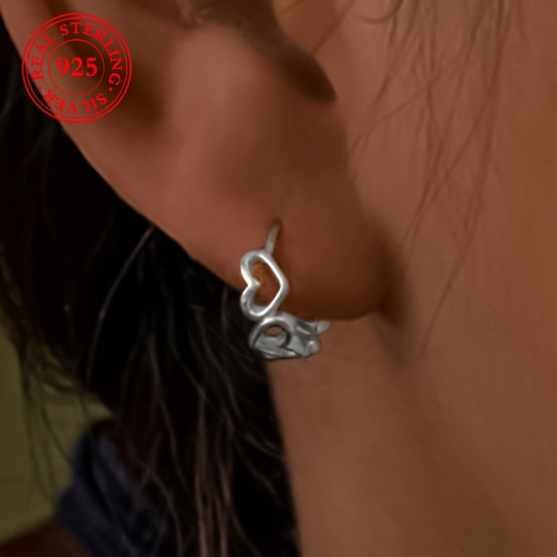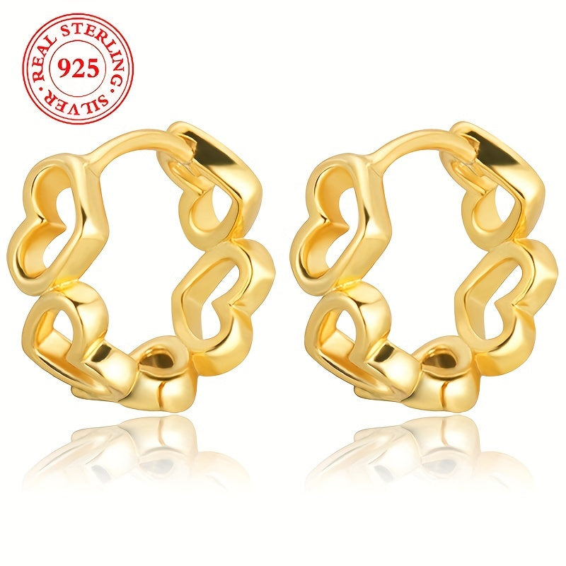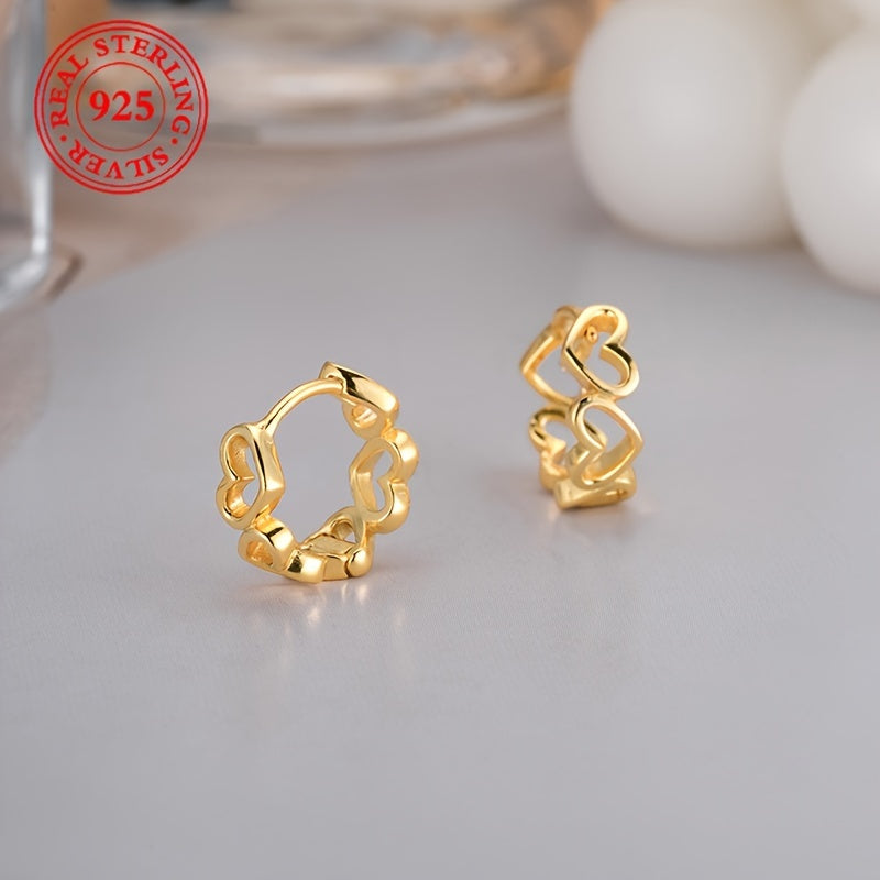 Elegant and versatile heart hoop earrings made of 925 sterling silver with a golden tone finish, perfect for daily wear or as a thoughtful gift for women.