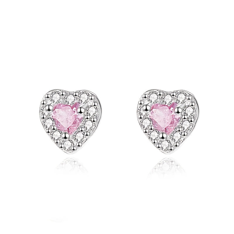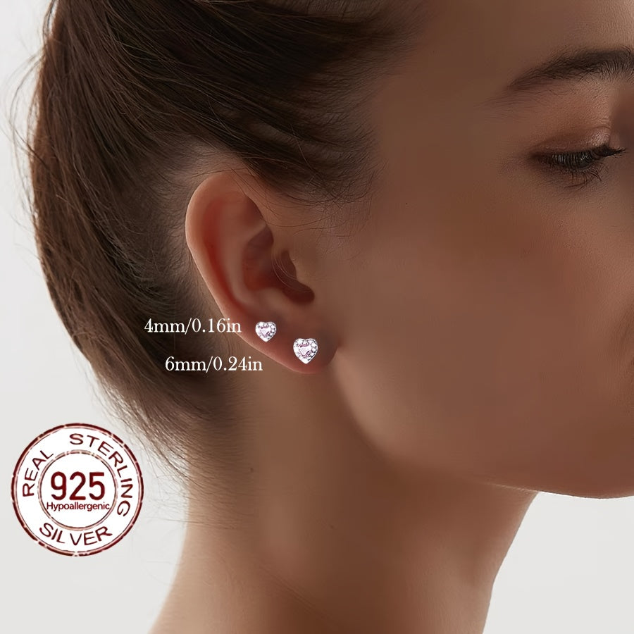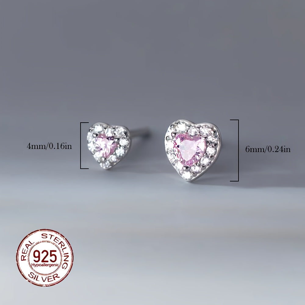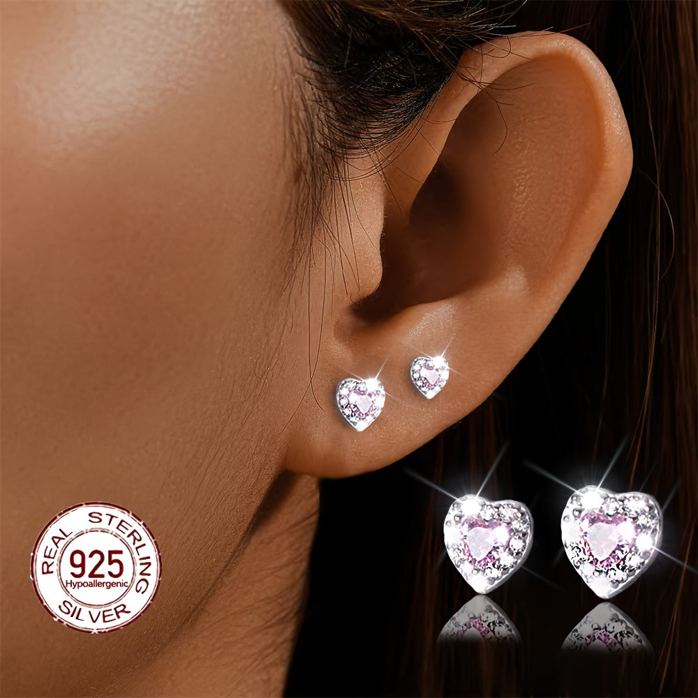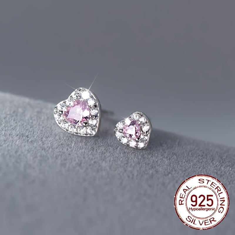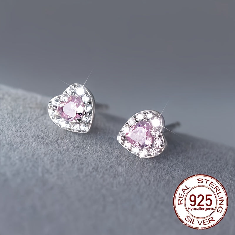 Elegant pair of earrings featuring pink heart-shaped synthetic zirconia on a high-quality S925 sterling silver base. Perfect for adding a touch of glamour to any outfit.