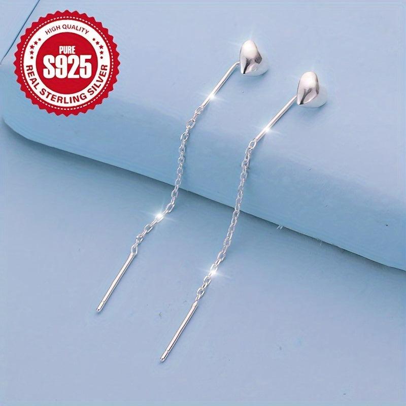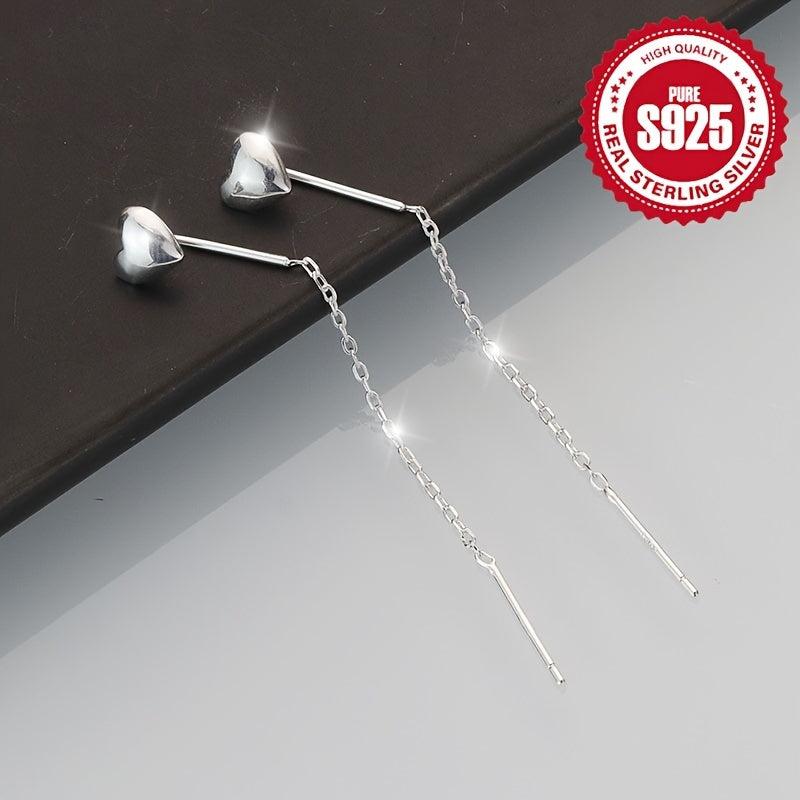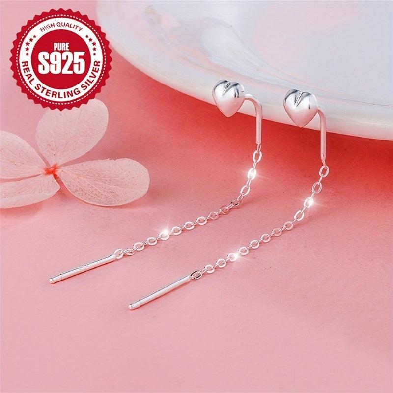These hypoallergenic heart earrings feature long tassels with heart-shaped pendants made of high-quality S925 silver. Perfect for daily wear or special occasions.