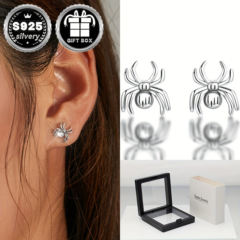 These dark spider stud earrings are perfect for a gothic Halloween party. Made of hypoallergenic 925 sterling silver, they weigh about 1.1g in total.