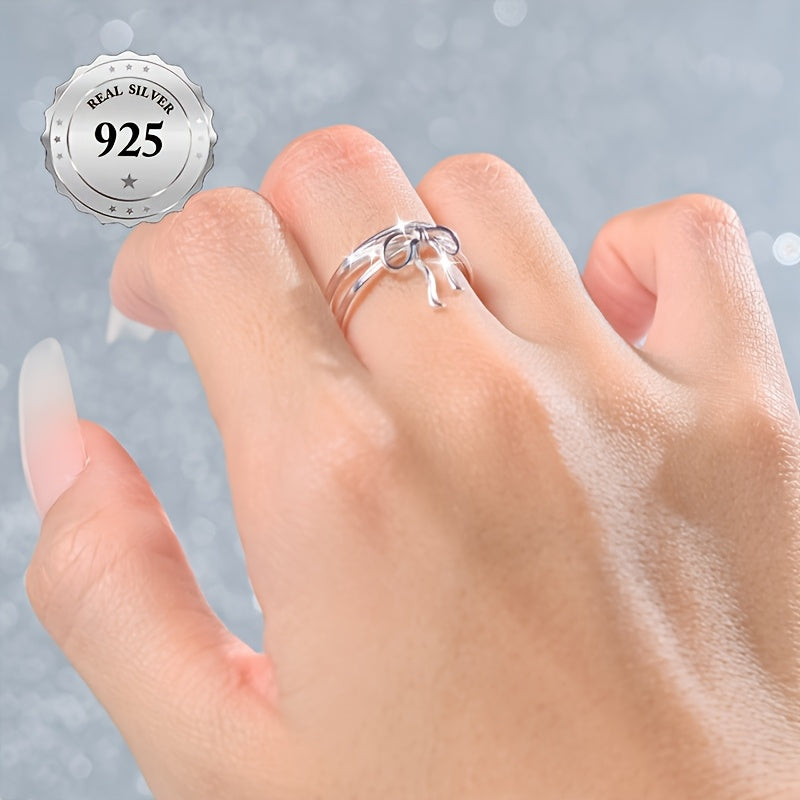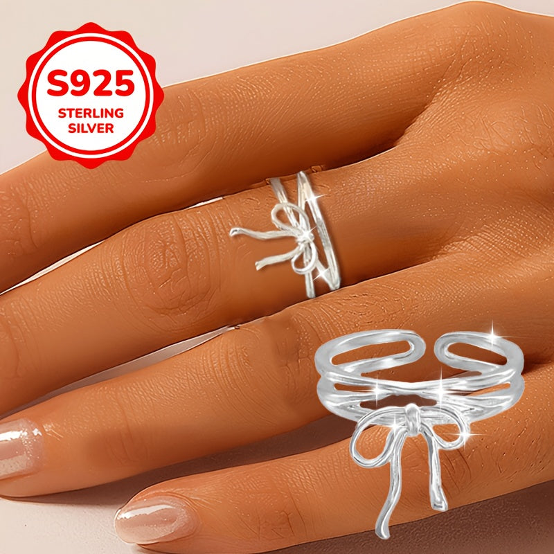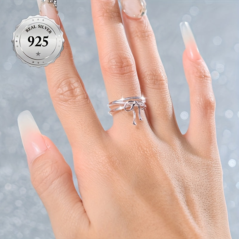 Elegant and versatile open ring featuring an interlaced bow design inspired by ballet style. Crafted in S925 silver, perfect for parties and daily wear, low allergy and high-end quality.