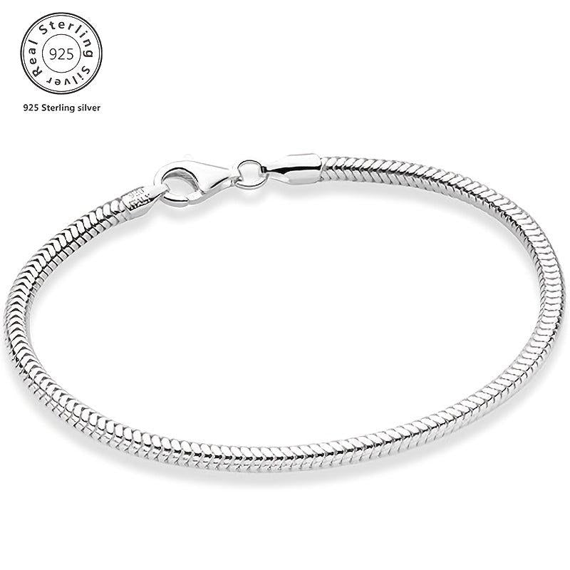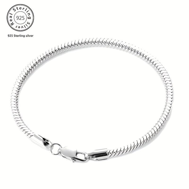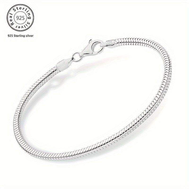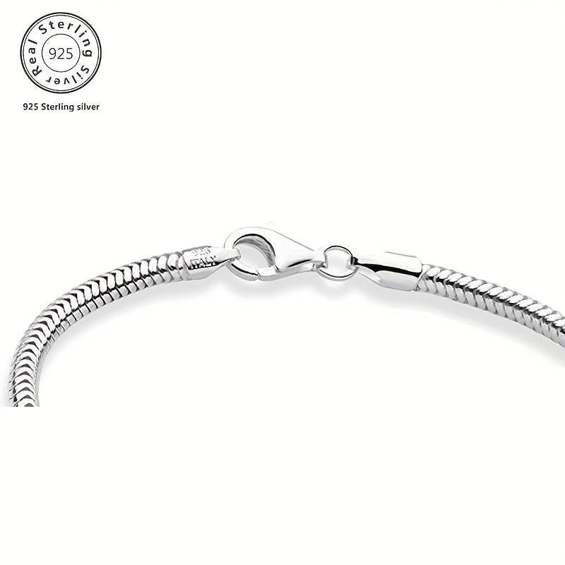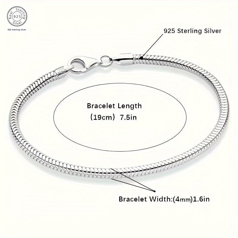 This stylish bracelet features a silver snake chain design. It is unisex and hip hop inspired, perfect for adding a touch of style to any outfit. The bracelet is crafted from Italian 925 silver and plated with silver, making it a durable and fashionable accessory.