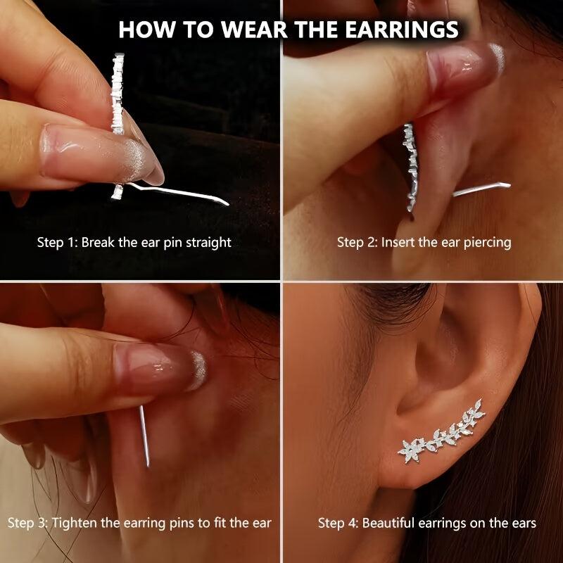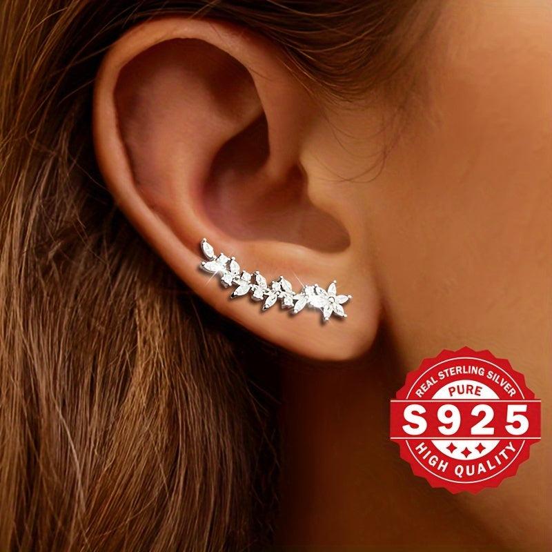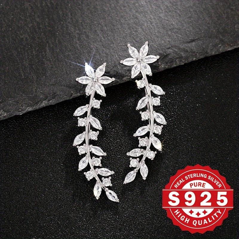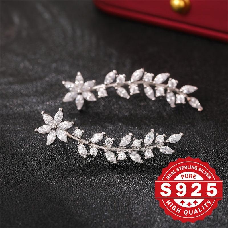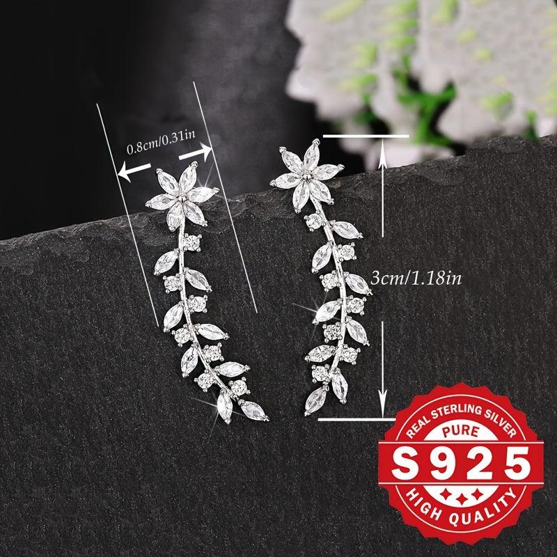 These s925 silver earrings feature a leaf shape with sparkling zirconia inlay, making them perfect for parties and as a gift for women. They are fashionable and elegant.