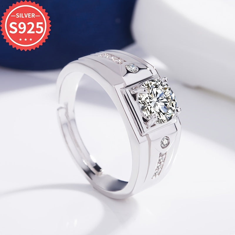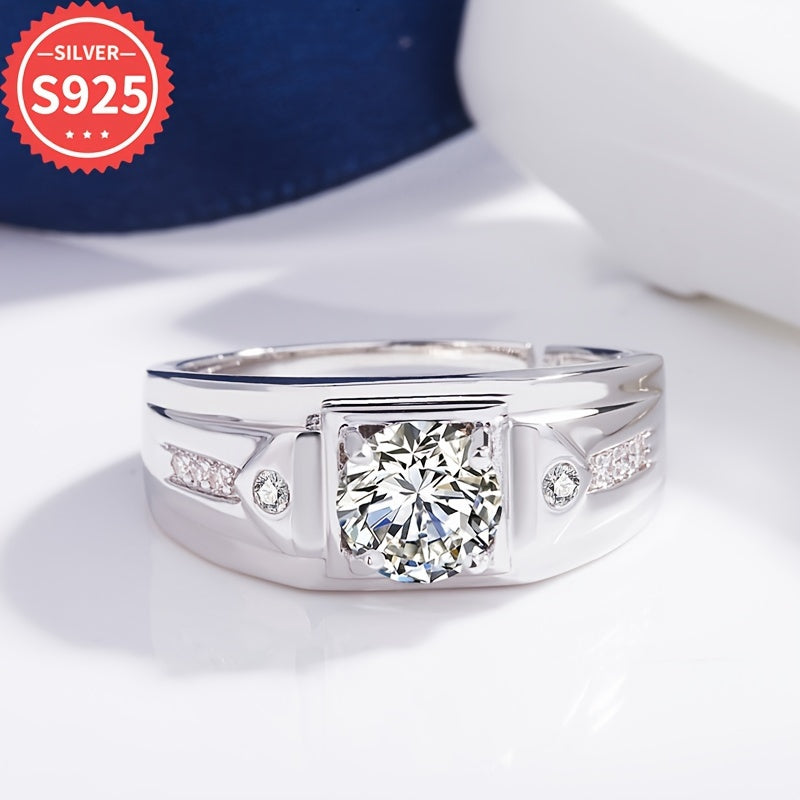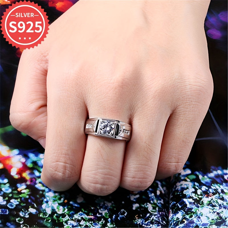 This men's 925 sterling silver ring features a wide shield design with hypoallergenic cubic zirconia accents, perfect for business and casual wear.