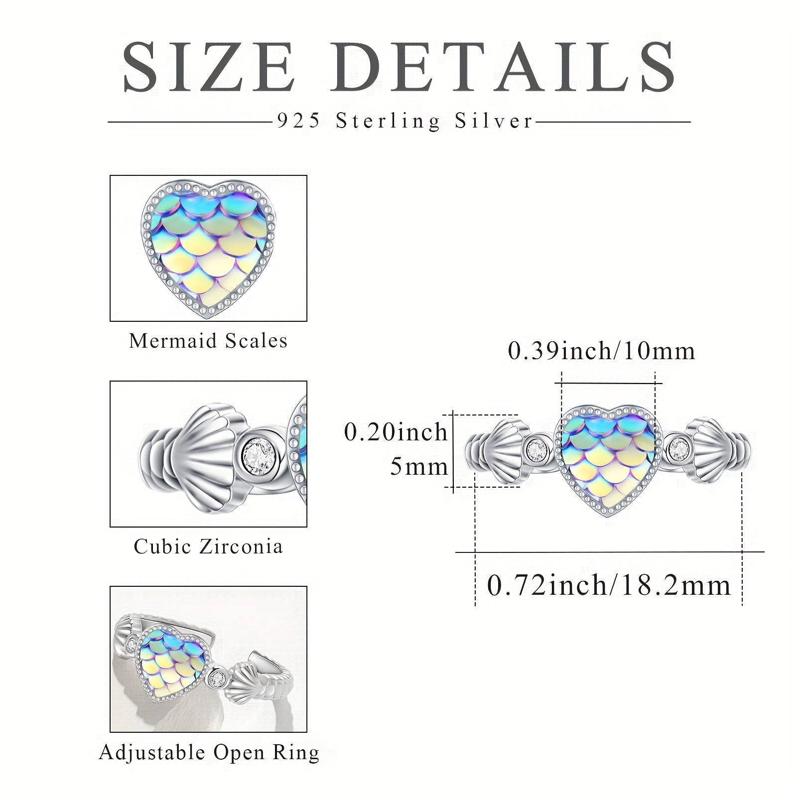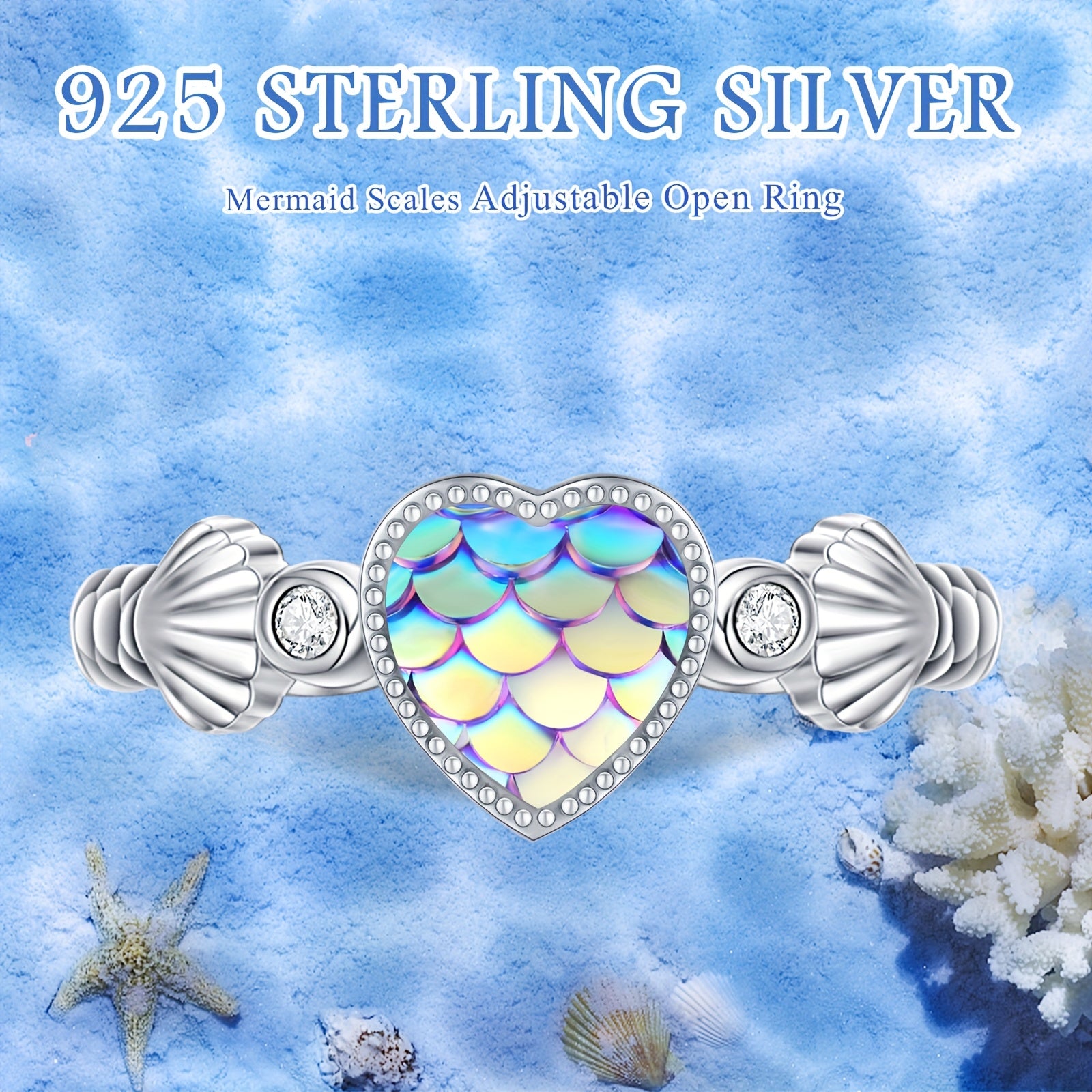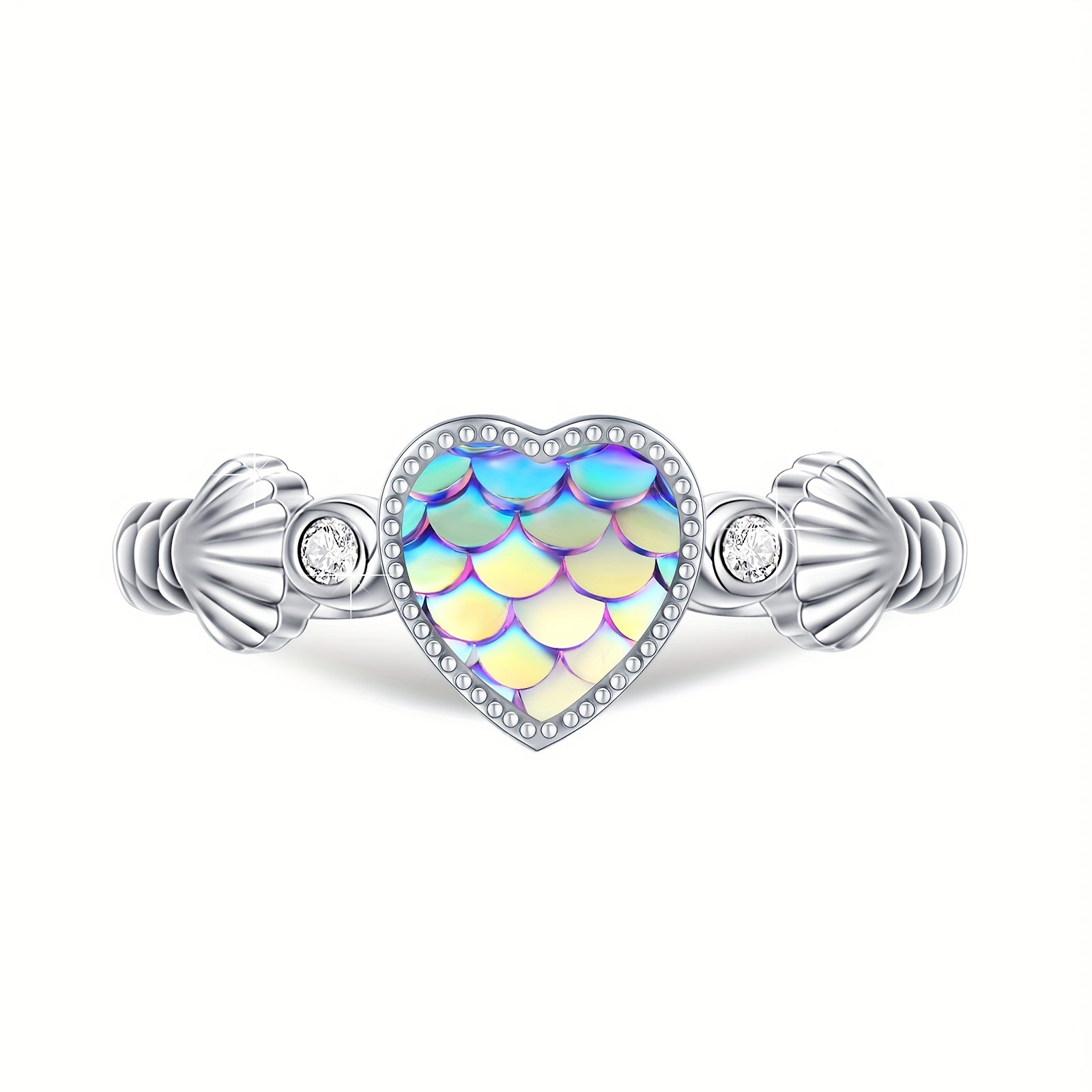 Add a touch of mermaid magic to your look with this stunning Mermaid Scale Heart Ring. Crafted from 925 sterling silver, this open ring features a purple heart design with intricate mermaid scale detailing and a charming shell accent. Perfect for any mermaid enthusiast.