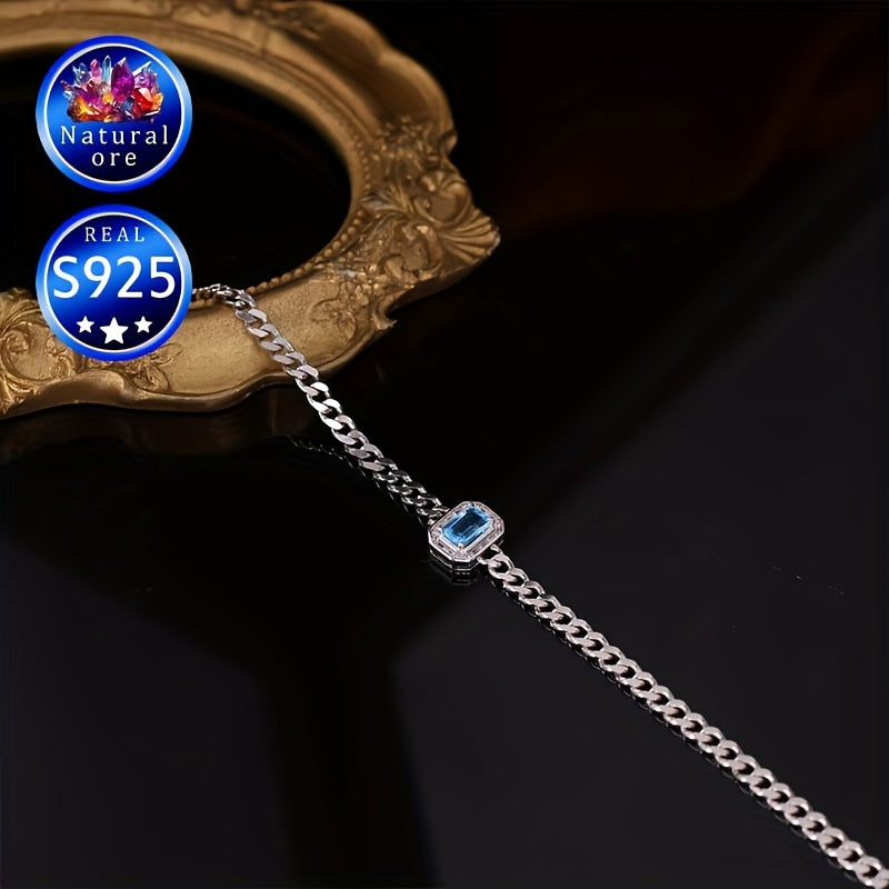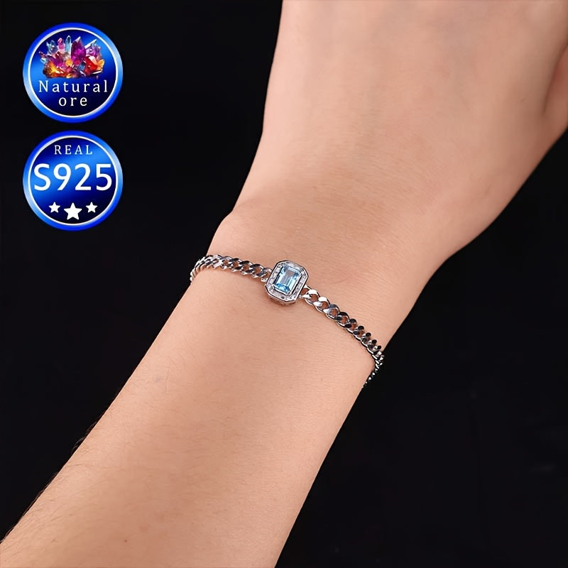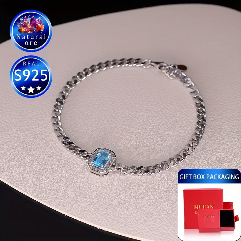 This gemstone bracelet features a topaz stone set in S925 silver, making it a perfect accessory for daily wear or special occasions. The natural ore variations create a unique look with differences in lightness and darkness.