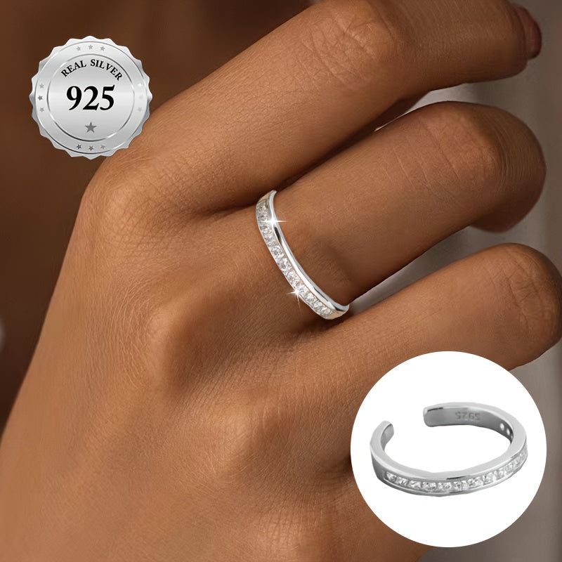 Add a touch of elegance with this minimalist S925 silver open ring featuring sparkling CZ stones. Perfect for stacking or wearing solo.