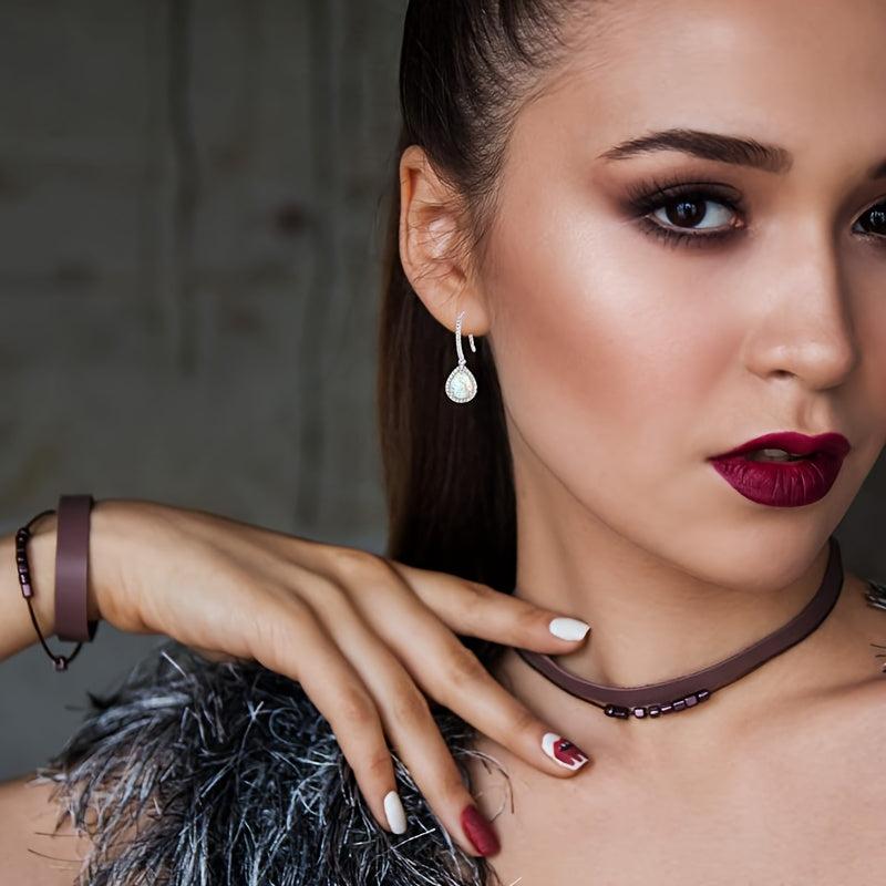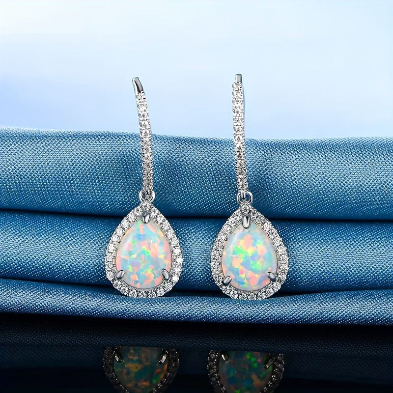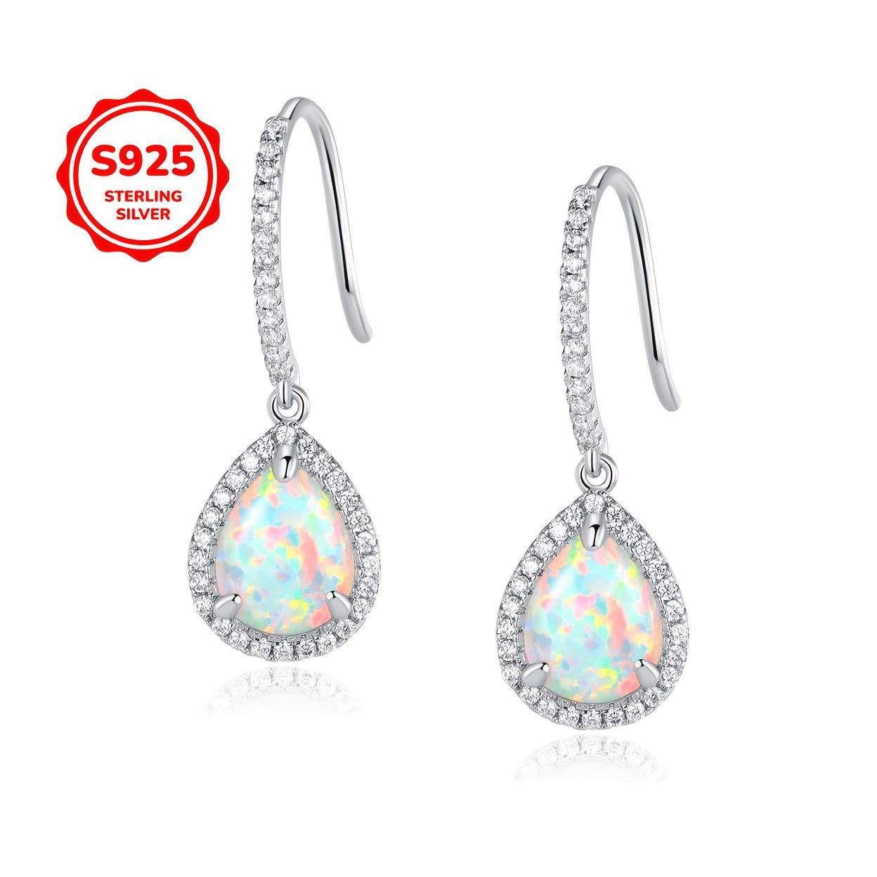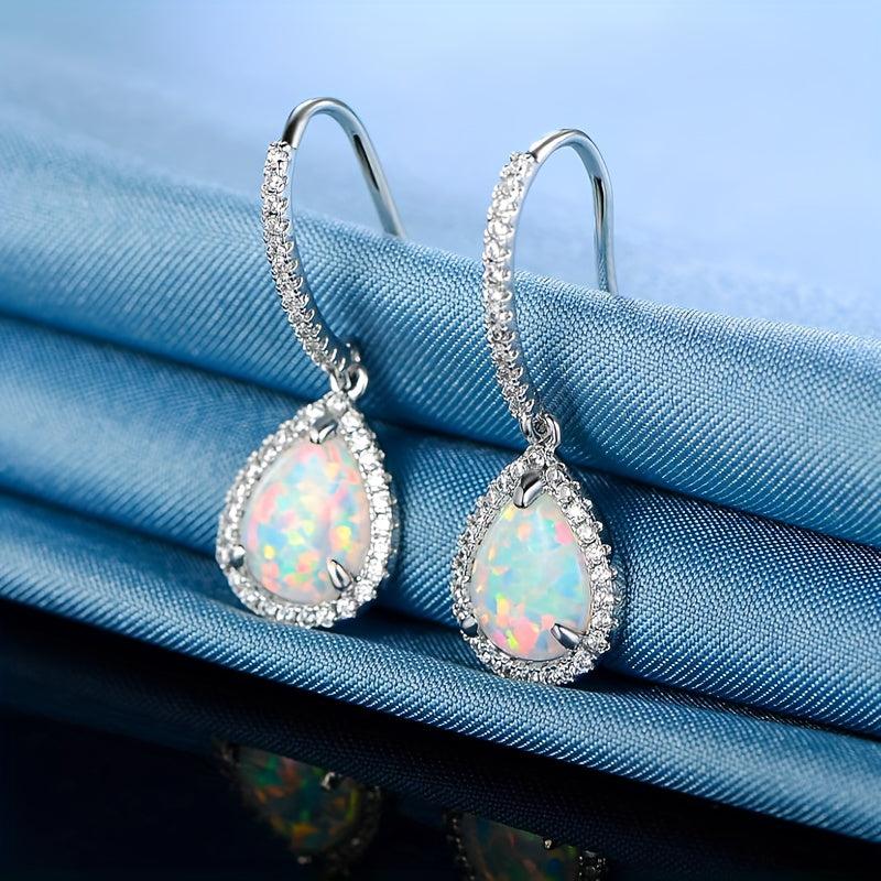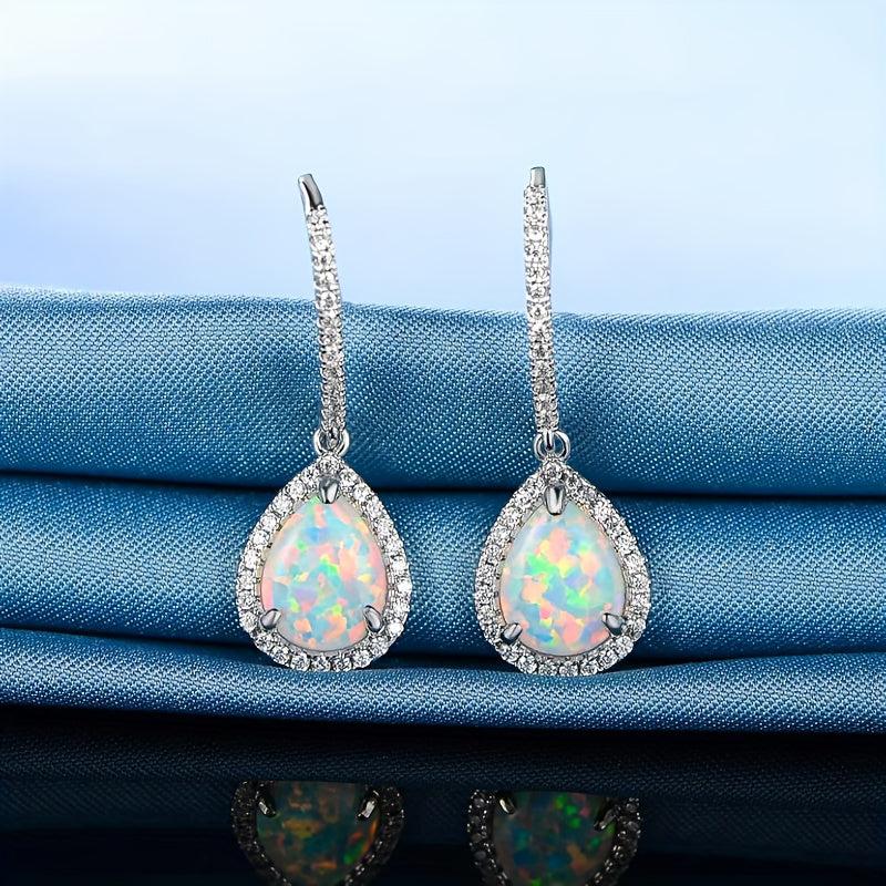 Add a touch of elegance with these teardrop opal earrings accented with sparkling zirconia stones. Made with high-quality S925 silver, these dangling earrings are perfect for any outfit.