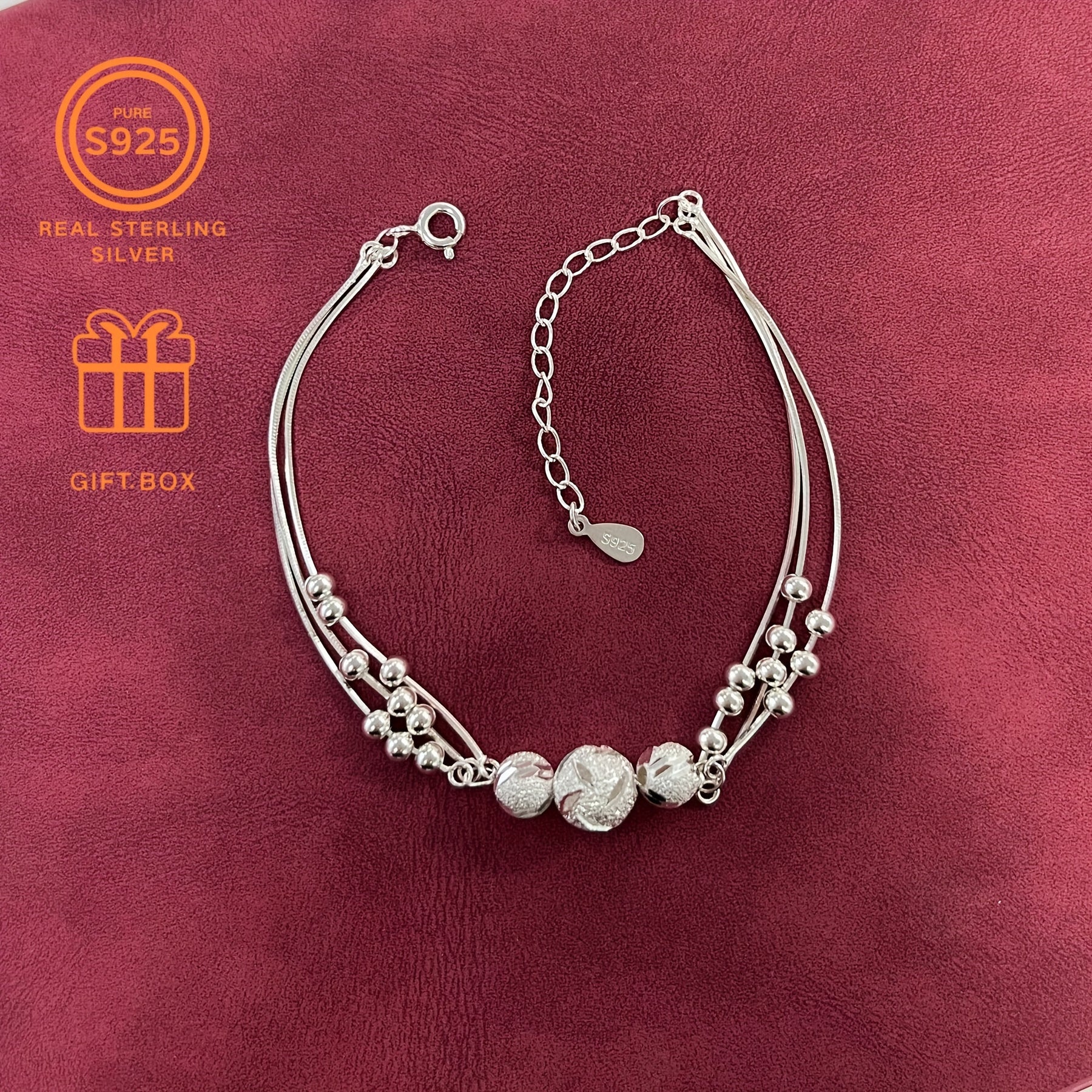 This exquisite charm bracelet features a romantic flower carving design and is made from high-quality S925 sterling silver. It weighs 4.39g and comes with a gift box, making it a perfect Christmas accessory for college theme.