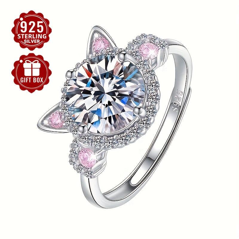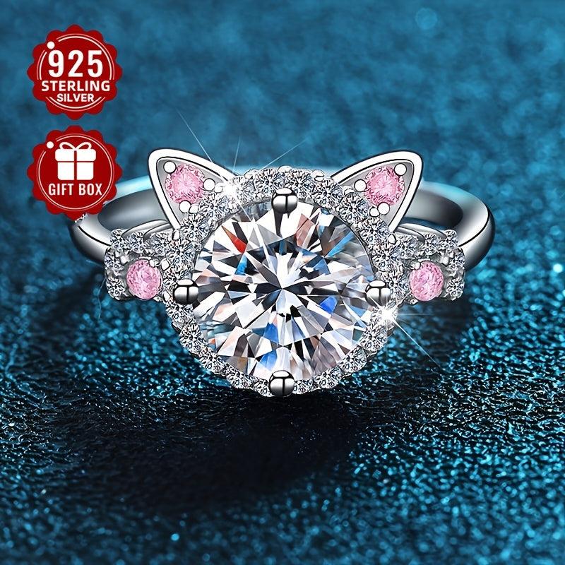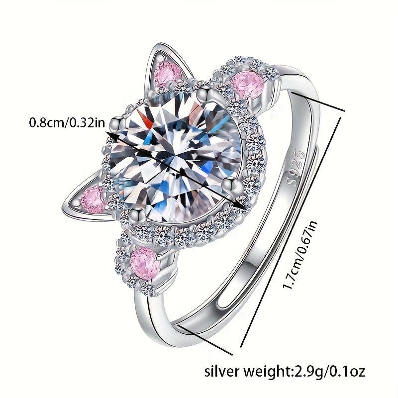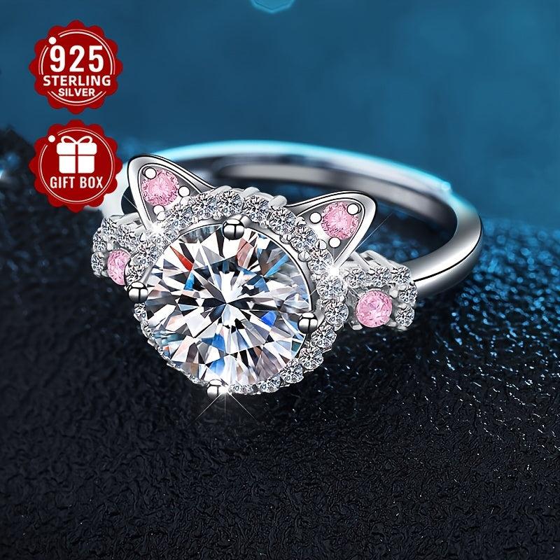 Adorable pink cat paw ring made of 925 sterling silver with micro inlaid synthetic zirconia. Perfect for wedding proposals and engagements.