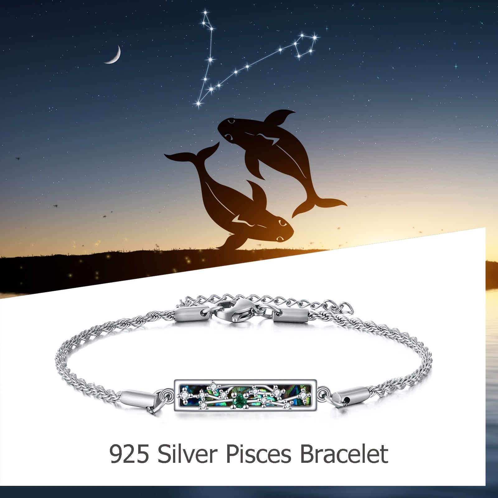 This beautiful bracelet features the Pisces and Aquarius zodiac signs in 925 silver. Perfect gift for horoscope lovers and anniversaries.