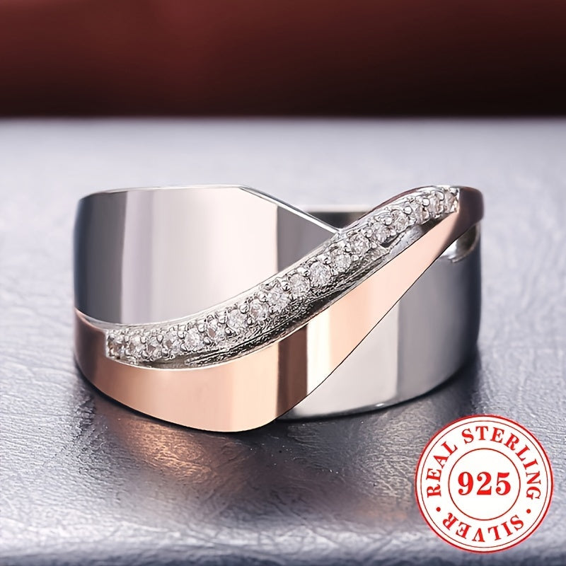 This wide face ring is crafted from 925 pure silvery metal and features sparkling zirconia stones. Perfect for parties or daily casual wear.