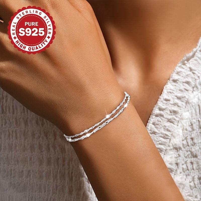 Elegant S925 pure silvery bracelet with car and flower charms. Perfect for birthdays, anniversaries, weddings, and festivals.