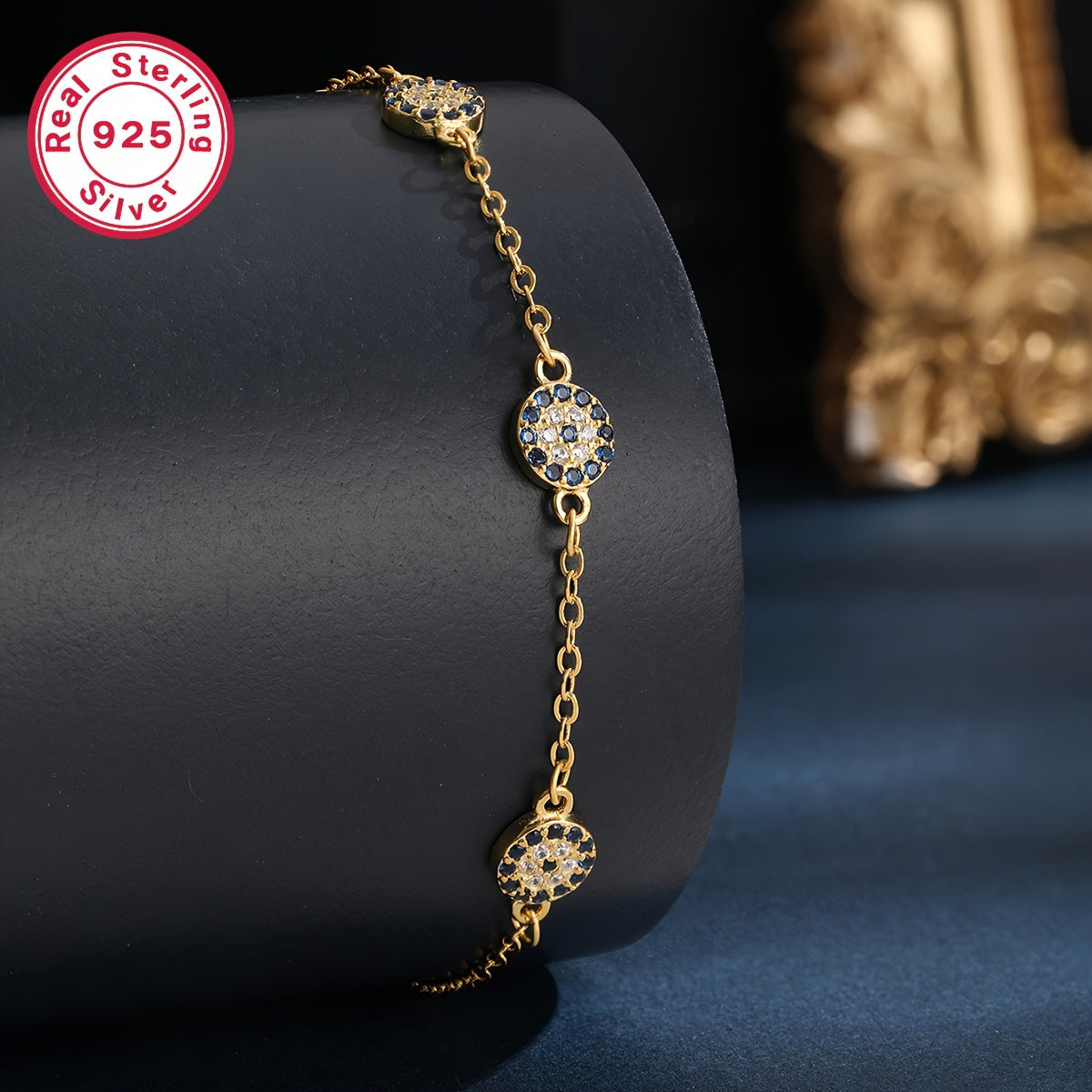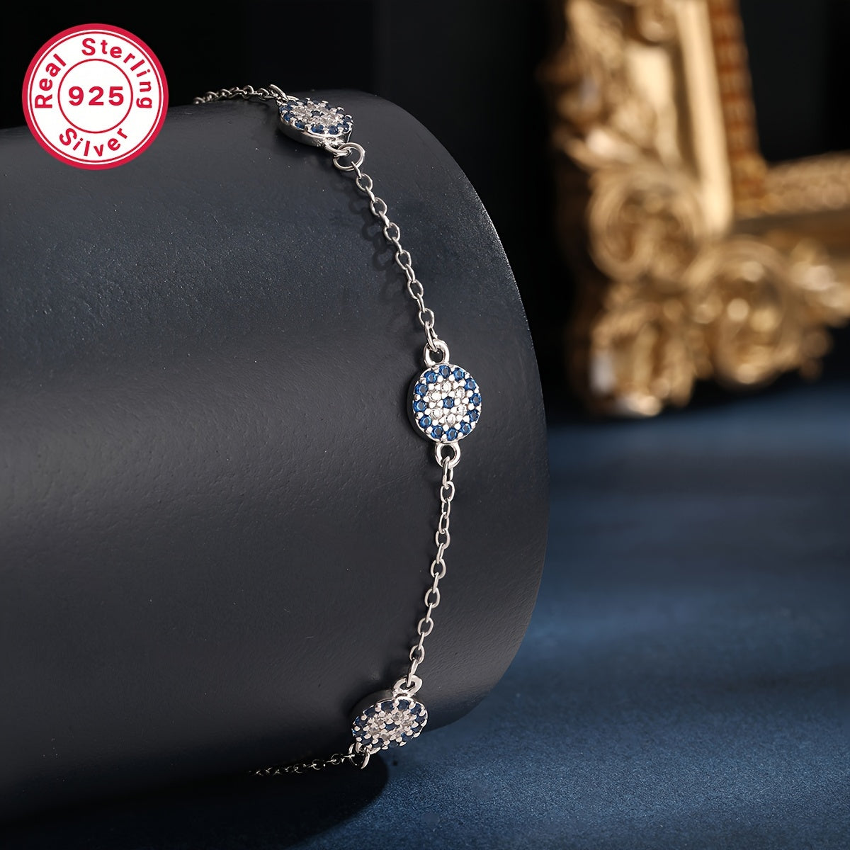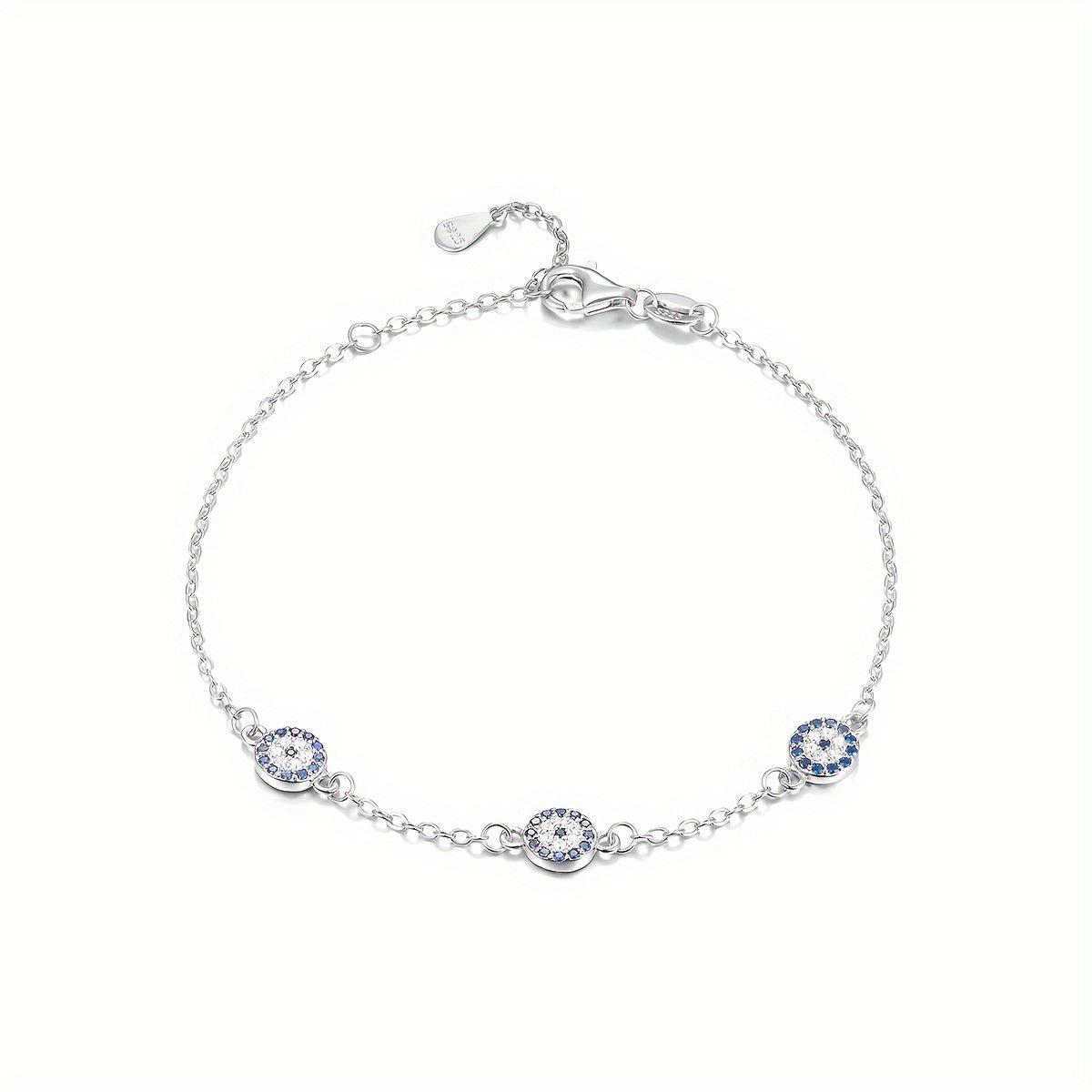 Elegant silver bracelet with a unique evil eye design featuring synthetic zirconia stones for luck. Made of pure S925 silver.