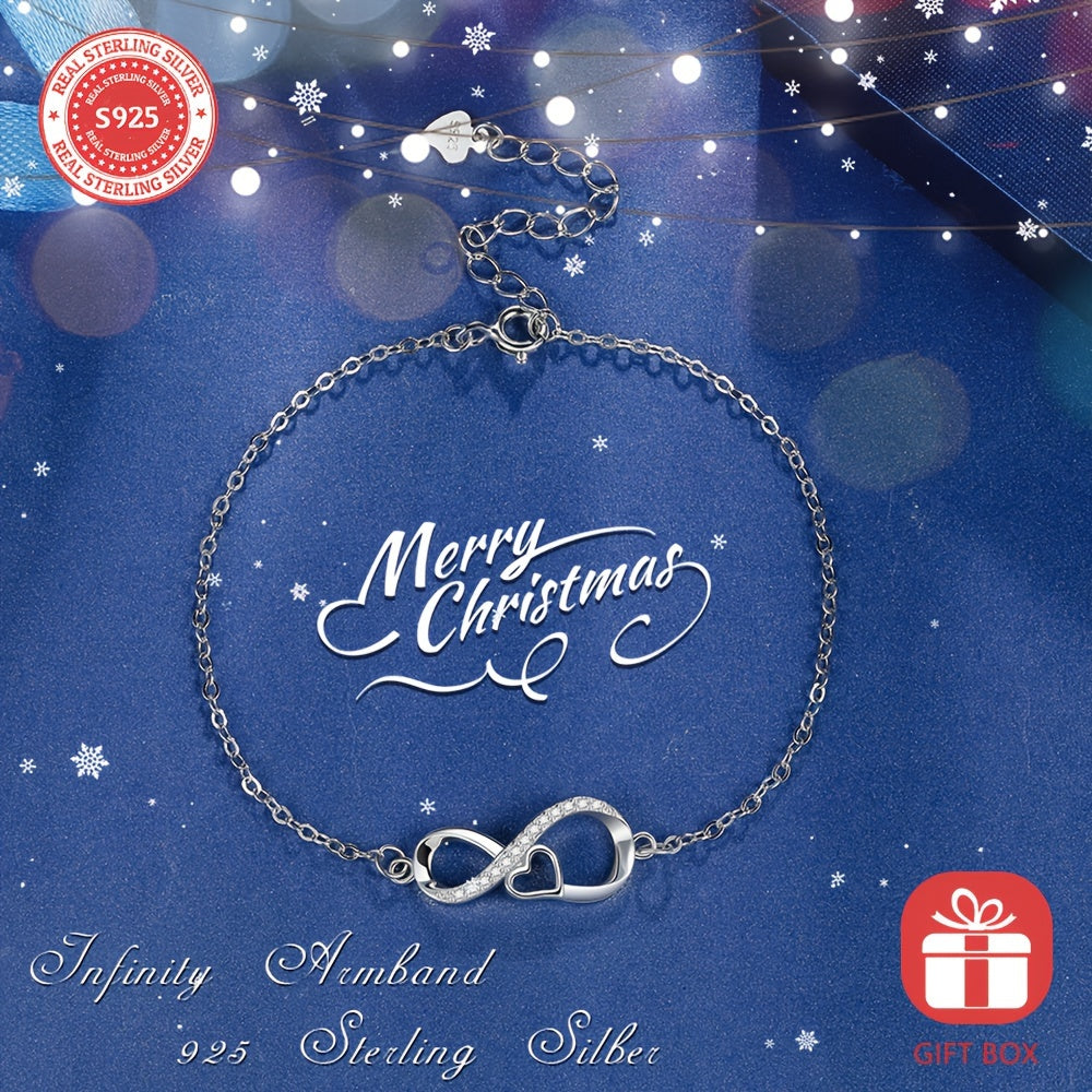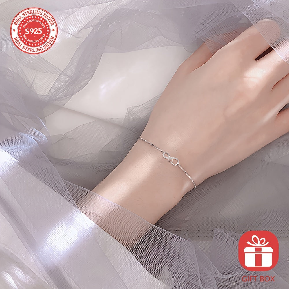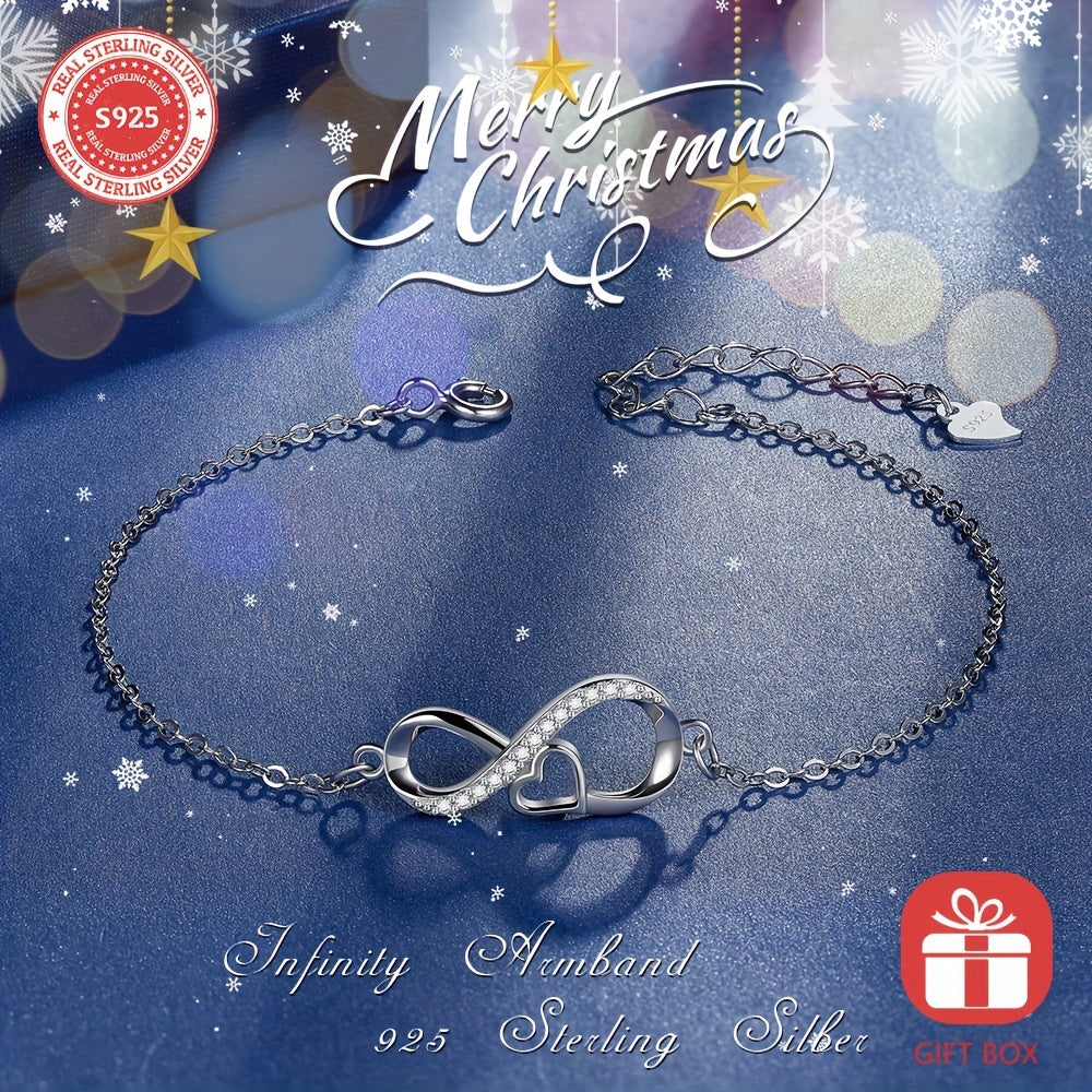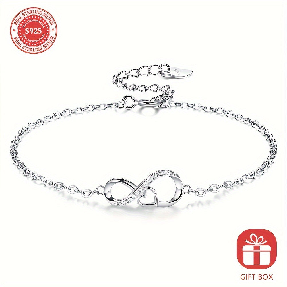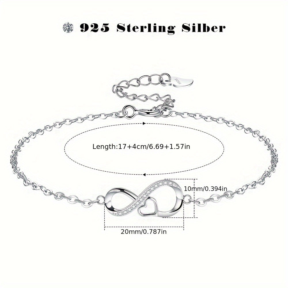 This stunning S925 sterling silver love infinity bracelet makes a perfect birthday gift for women and girls. The bracelet comes in a beautiful jewelry box.