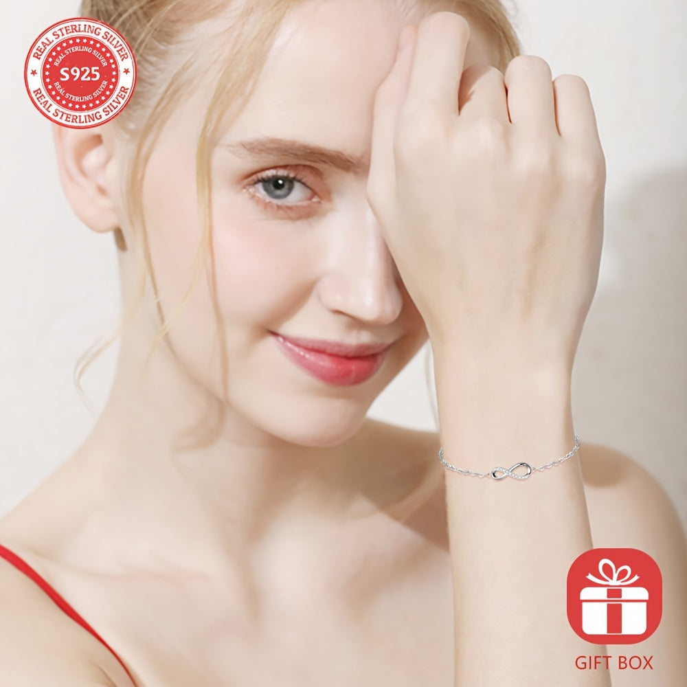 This classic love bracelet features an infinity design symbolizing eternal love. Crafted from S925 sterling silver, it makes a perfect gift for women.