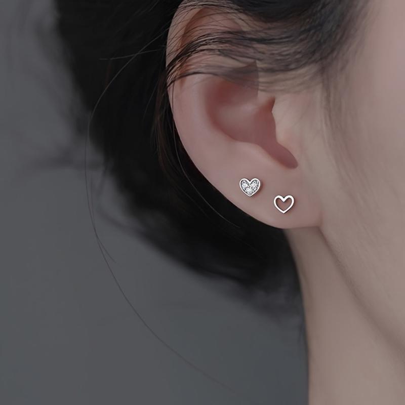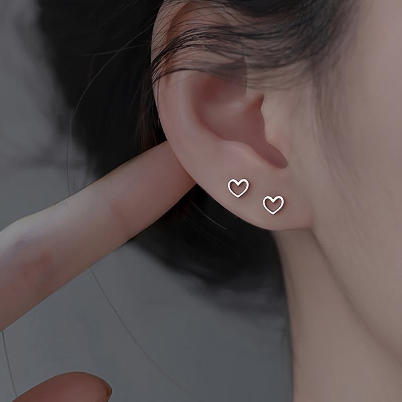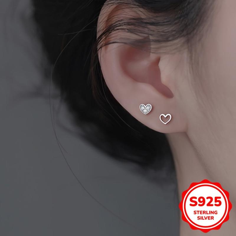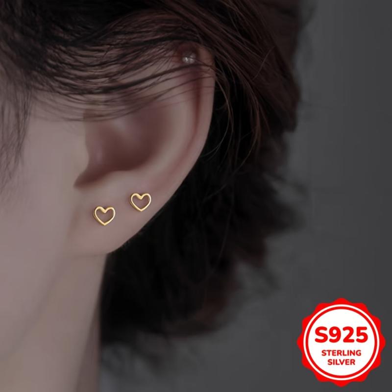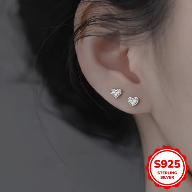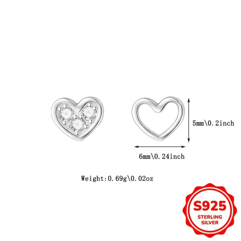 These adorable stud earrings are crafted from pure S925 silver and feature a pair of mini love hearts. Perfect for daily wear, they are lightweight at 0.69g, making them comfortable to wear all day long.