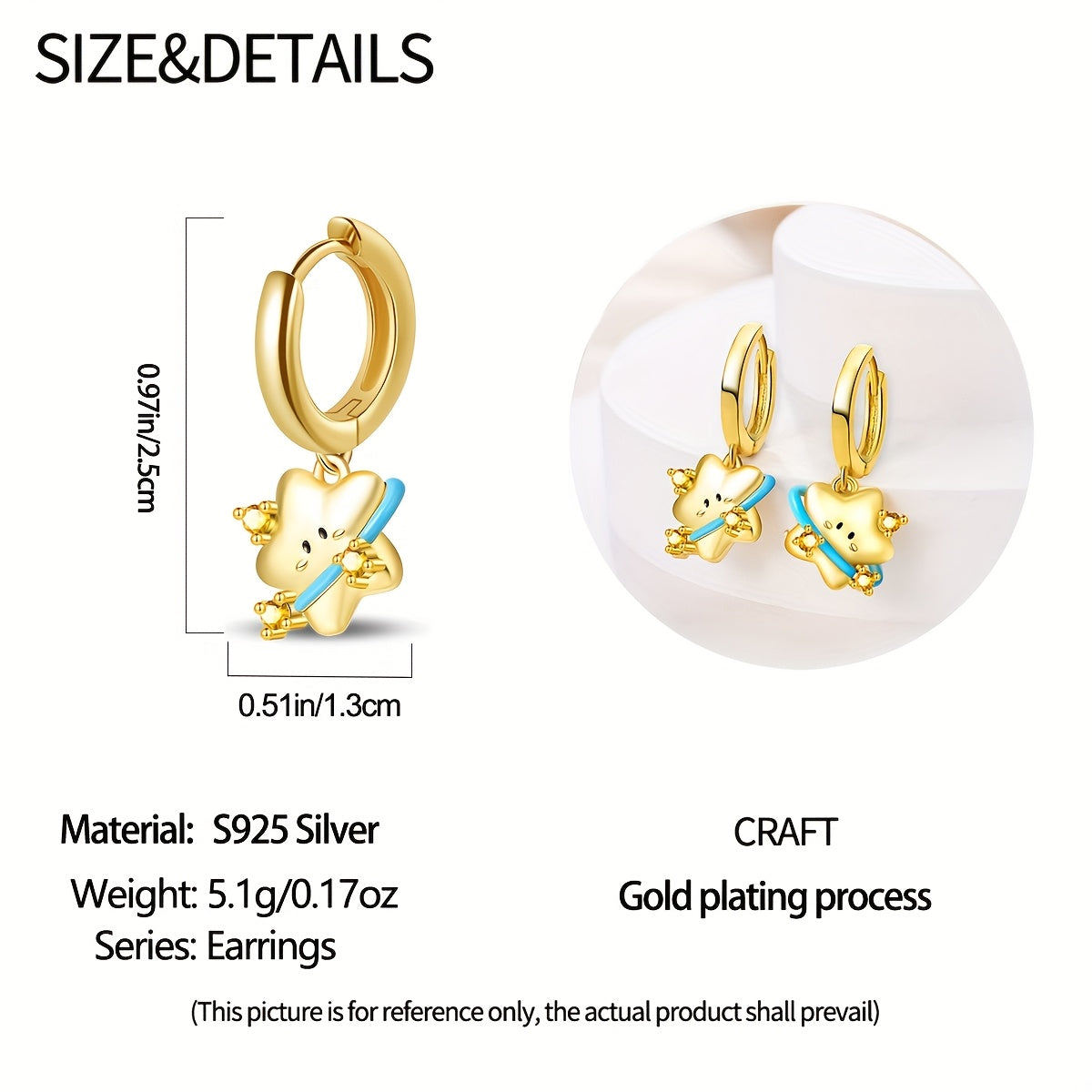 Beautiful and stylish S925 pure silver star earring, perfect for ladies' fashion. Ideal choice for DIY projects, holidays, birthdays, and gifts. The silver weight is 3 grams.