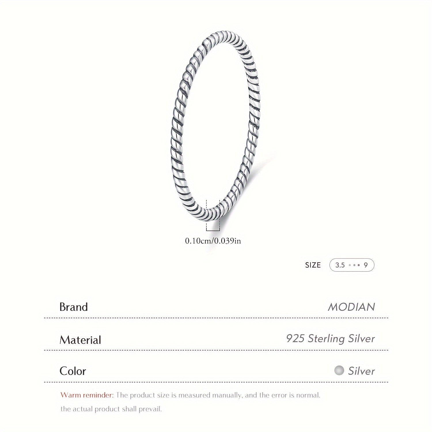 Add a touch of elegance to your look with this European and American retro twist ring. Made of pure S925 silver, this fashionable and plain ring is lightweight at only 0.66g, perfect for everyday wear.