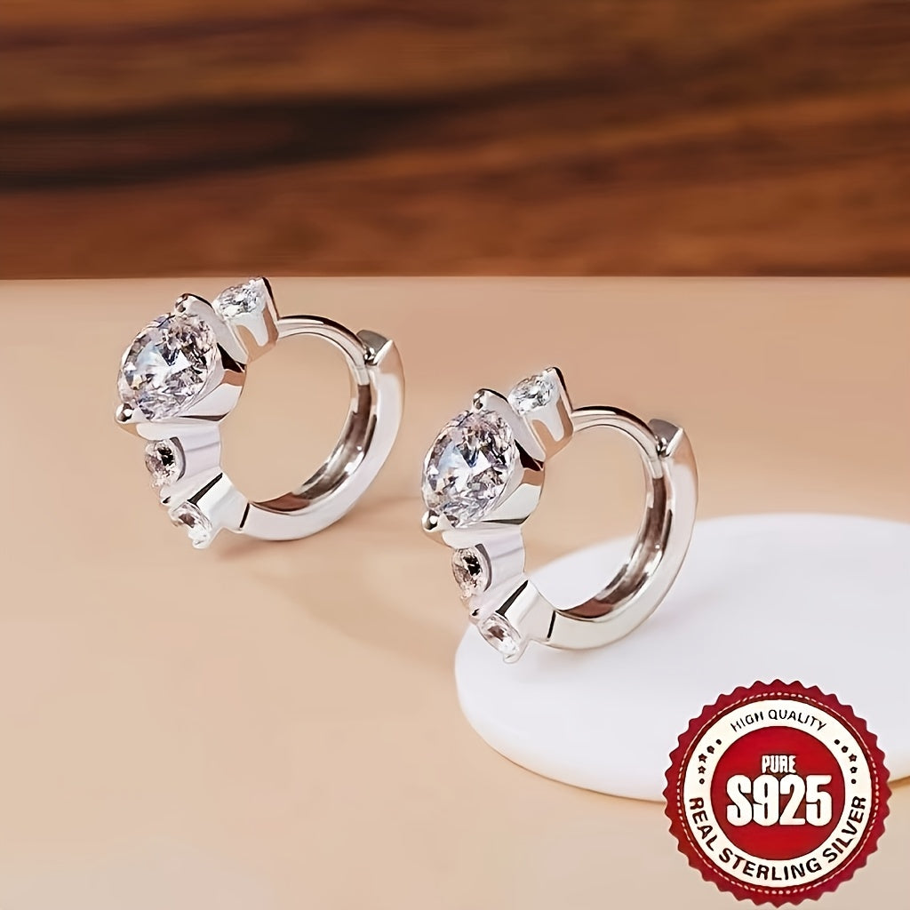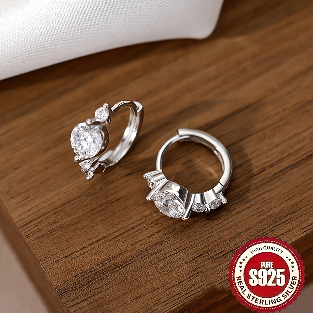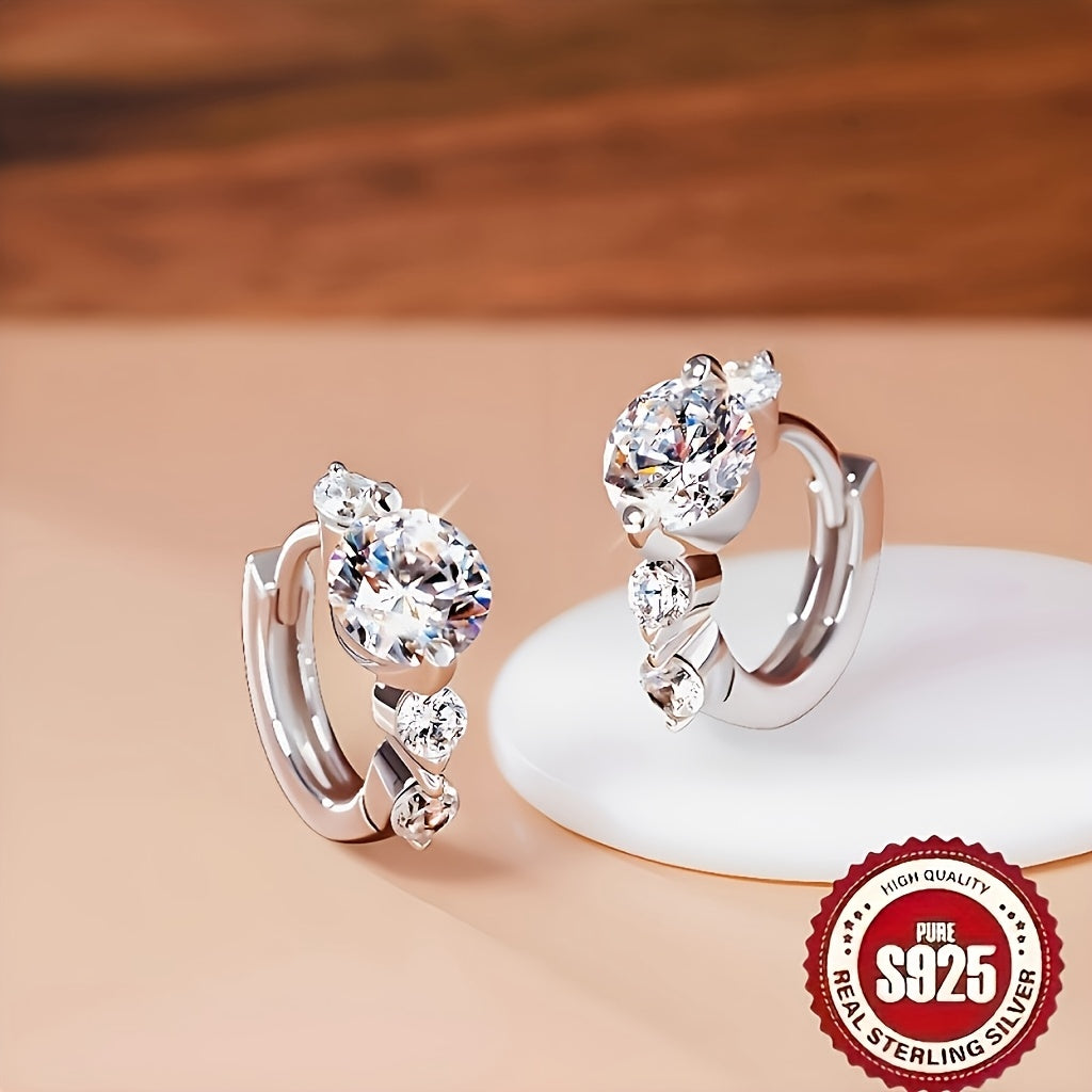 S925 Pure Silvery Earrings with Crystal, All Seasons Wear, Daily & Parties