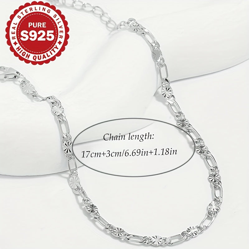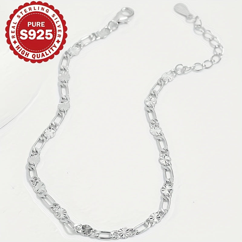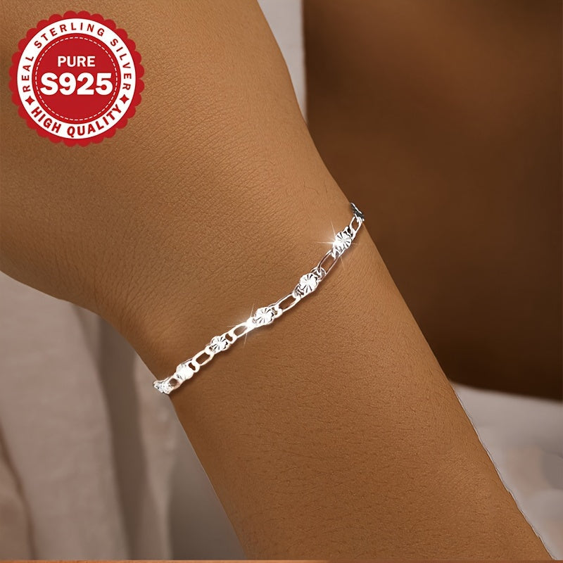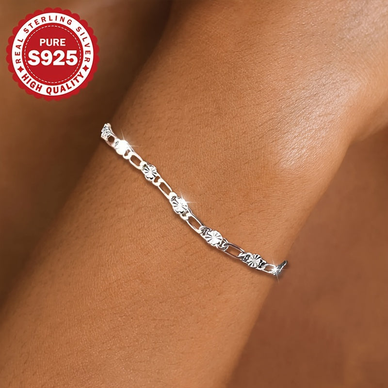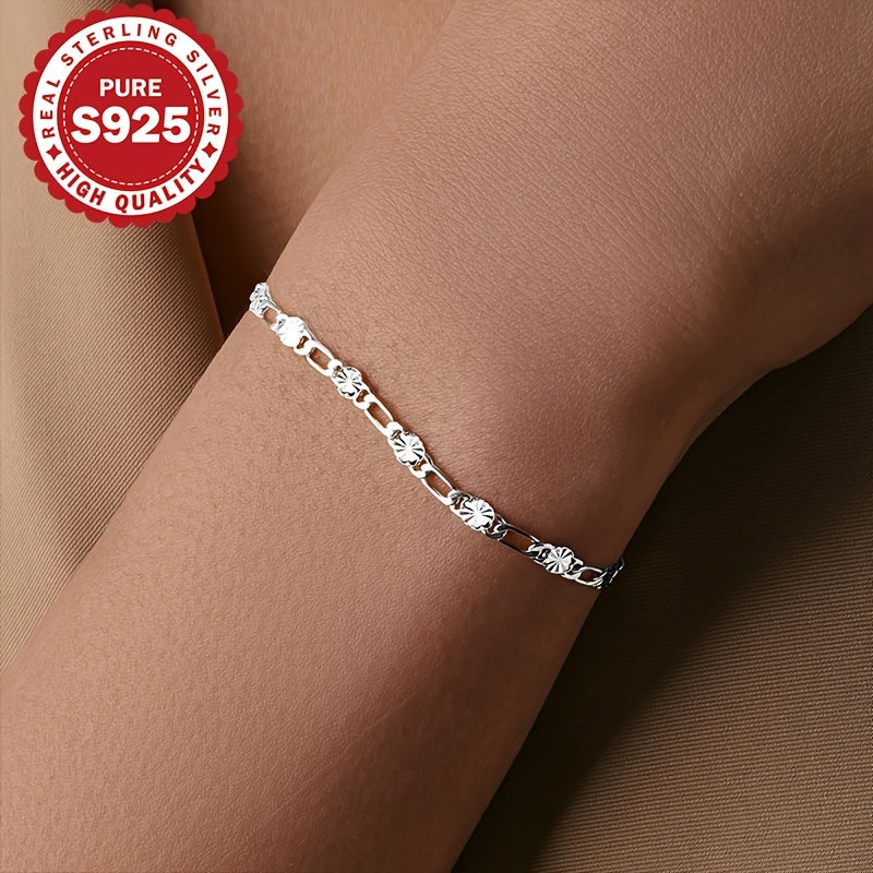 S925 Pure Silvery Flower Chain Bracelet for Women