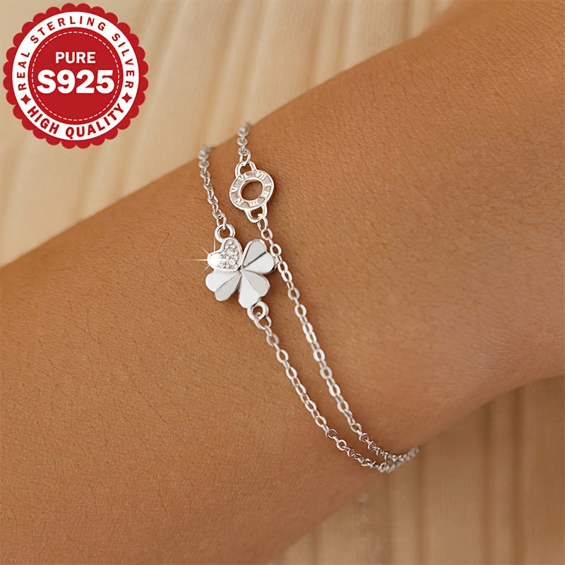 S925 Pure Silvery Flower Circle Bracelet Fashionable Gift for Women
