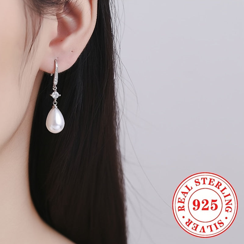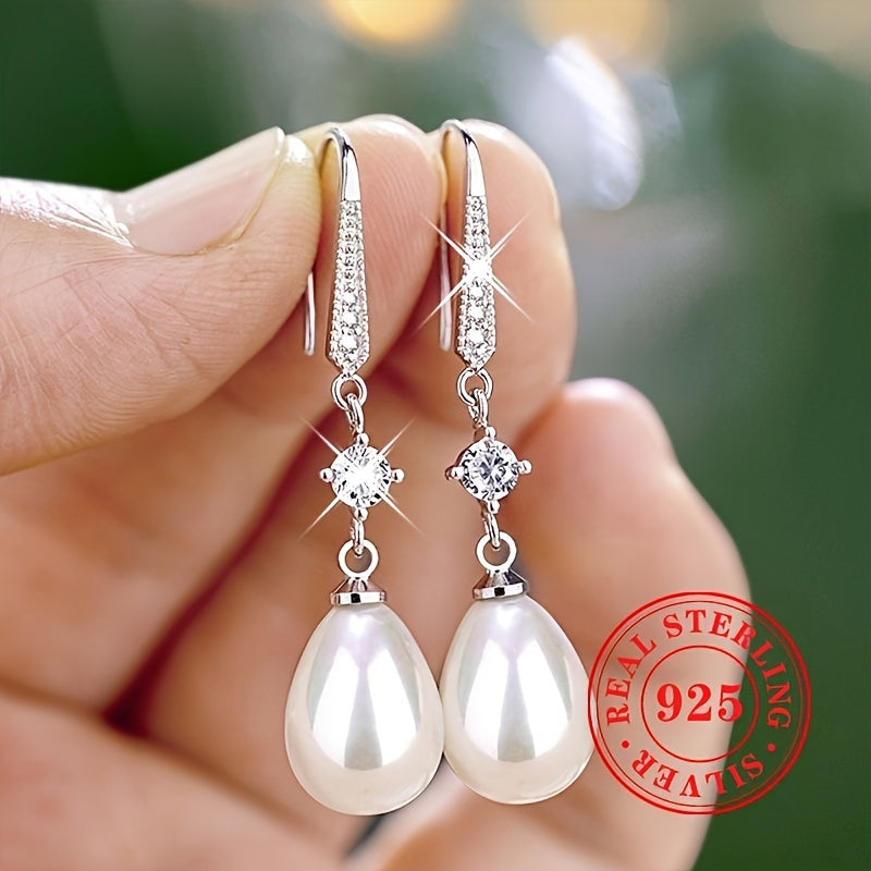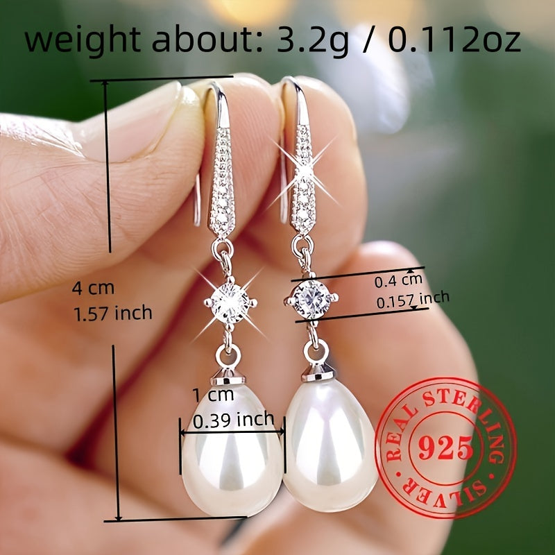 Enhance your bridal look with these elegant dangle earrings. Made with S925 pure silver and imitation pearls, these earrings are perfect for weddings and special occasions.
