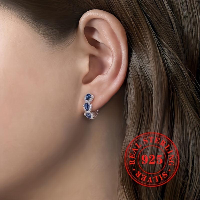 Elegant and beautiful circle earrings featuring artificial sapphire inlays on pure silvery base. Perfect for brides, engagements, and weddings.