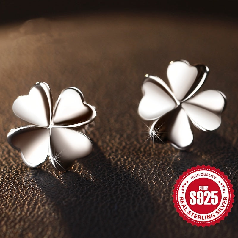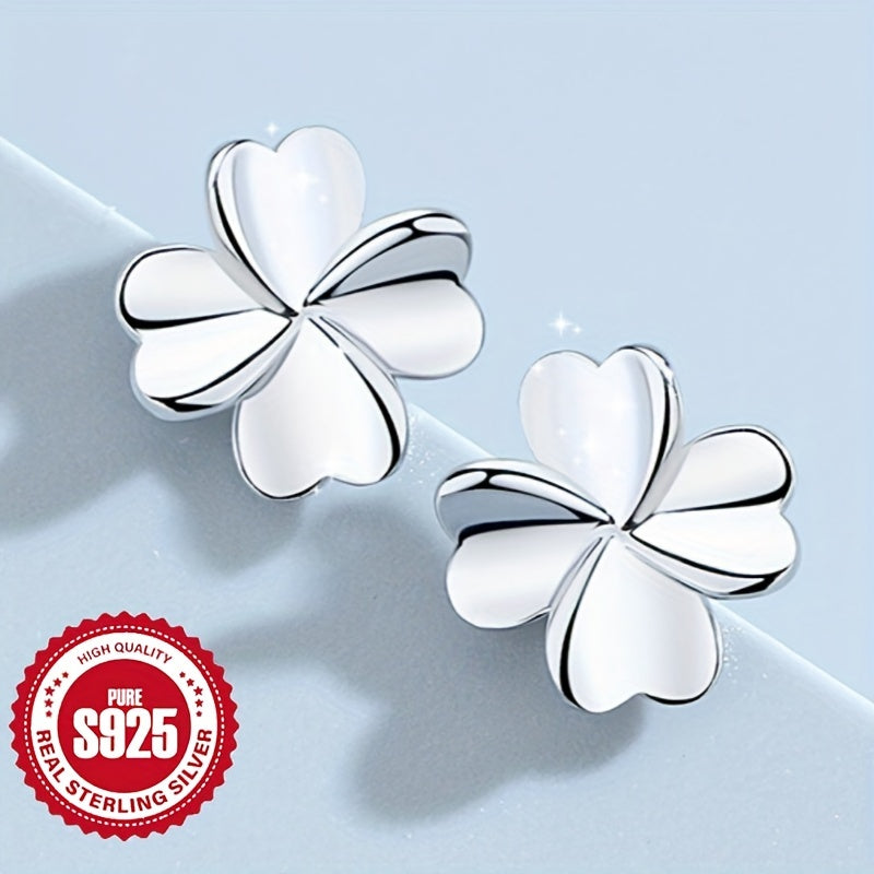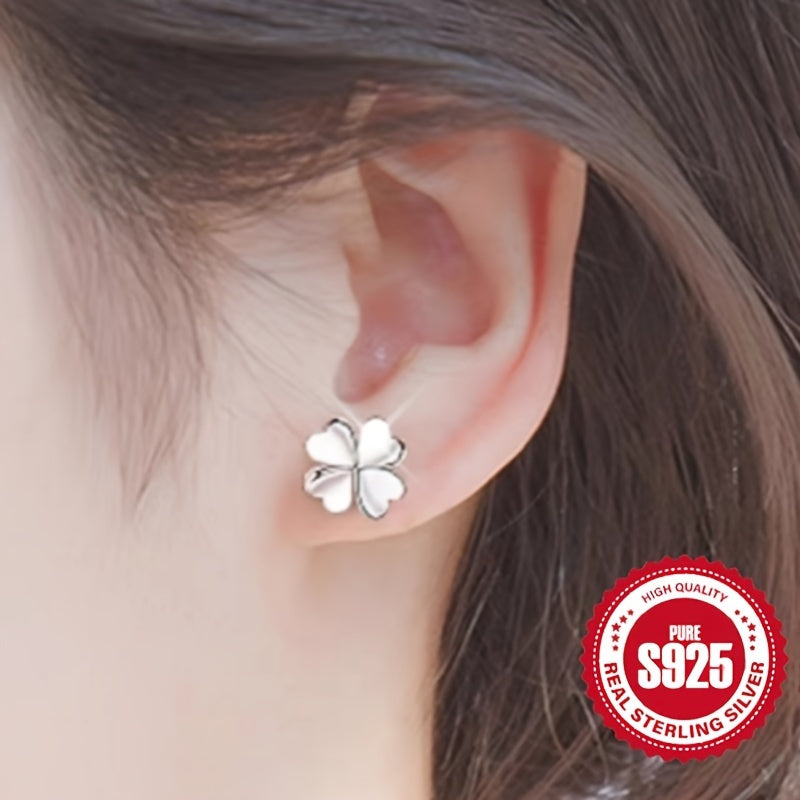 S925 Silver Clover Earrings Ladies' Temperament Daily Wear Low Allergy