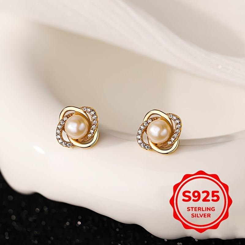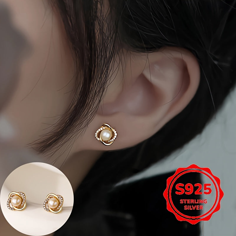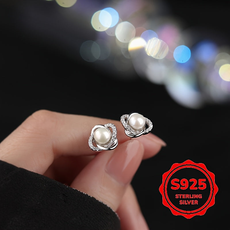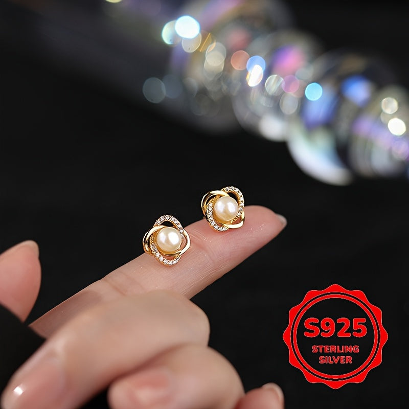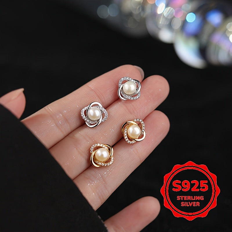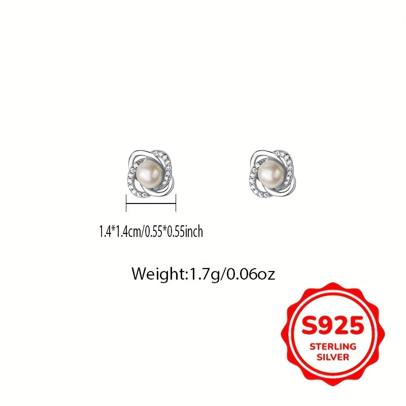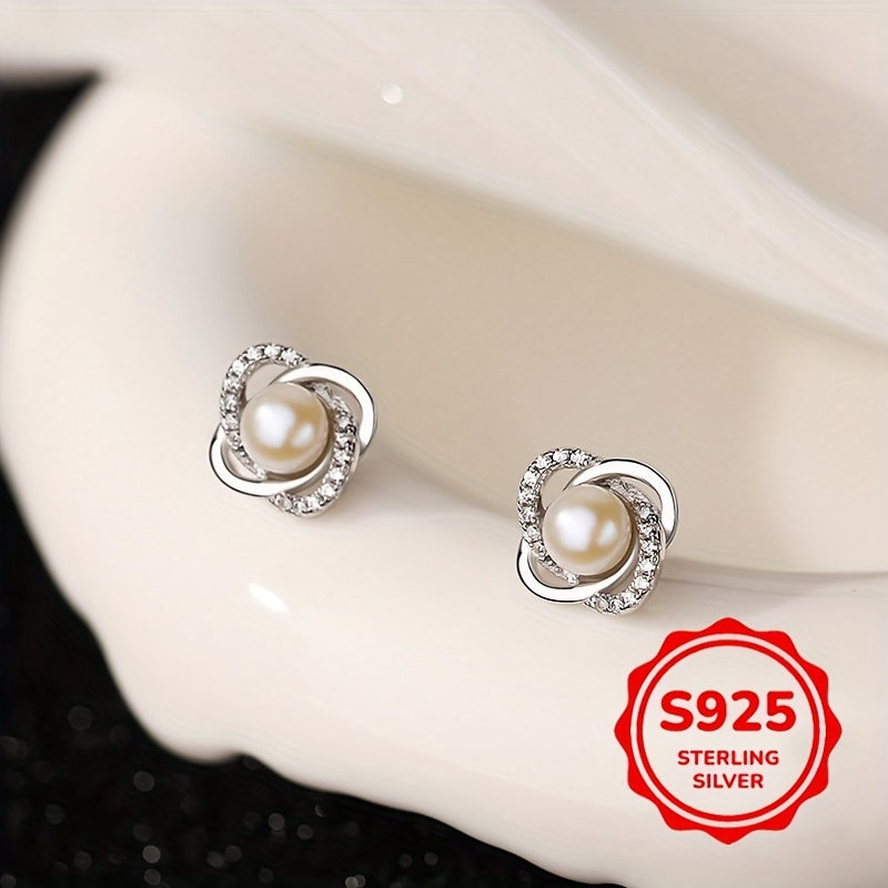Elevate your style with these elegant S925 sterling silver stud earrings featuring a delicate four-leaf clover design with lustrous freshwater pearls. Hypoallergenic and perfect for daily wear or special occasions.