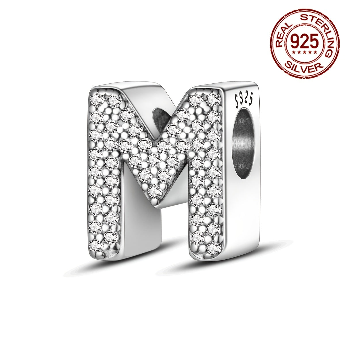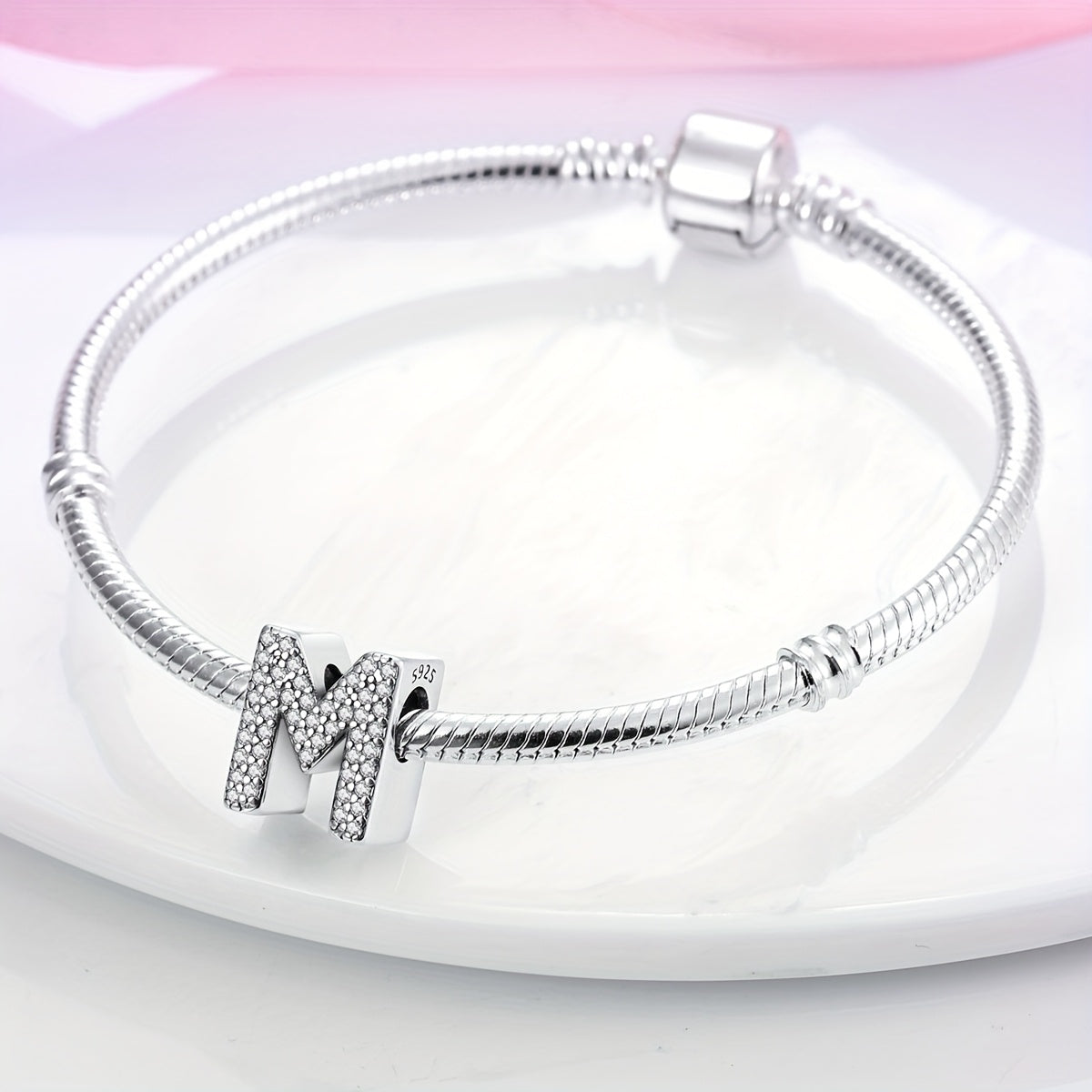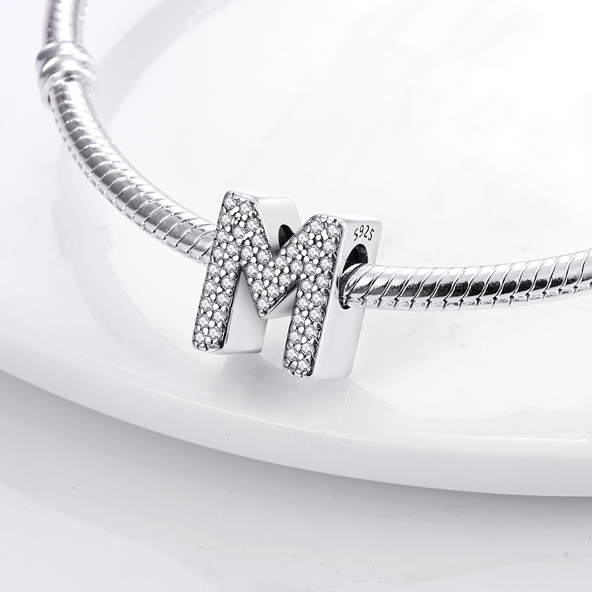 Elegant S925 sterling silver English letter M charm for creating personalized bracelets or necklaces. Perfect for daily wear or as a thoughtful gift for women.