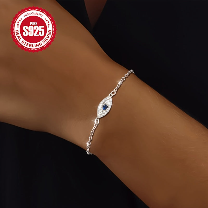 This evil eye bracelet is crafted in S925 silver, featuring a gothic style design that is perfect for Christmas and Halloween. Made with low allergy potential for comfortable wear.