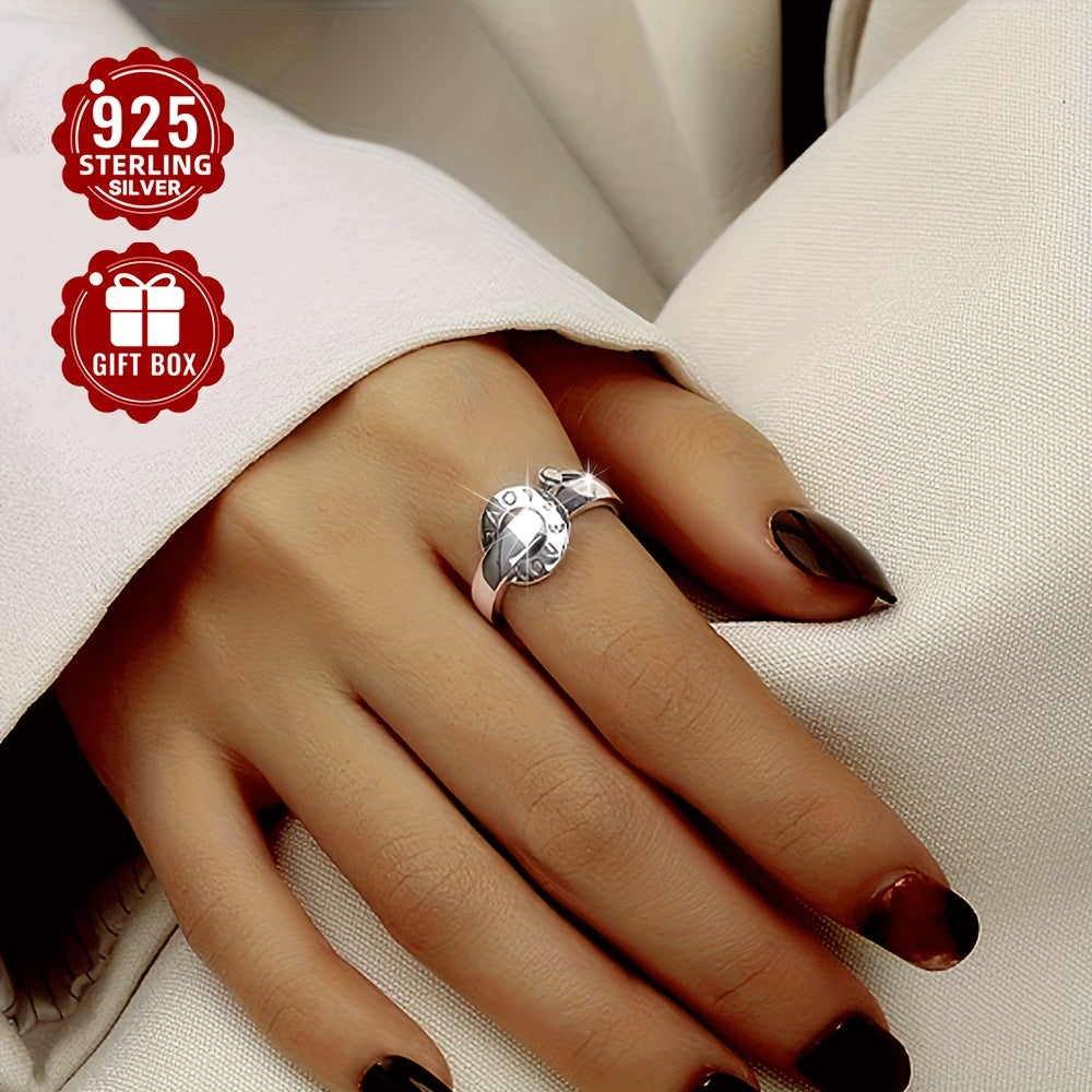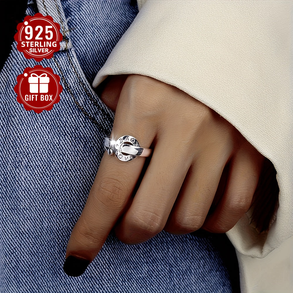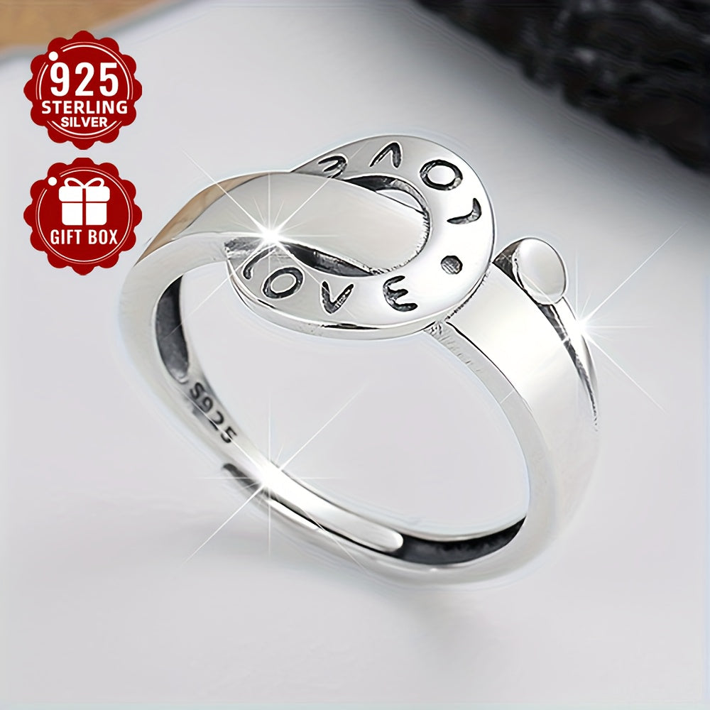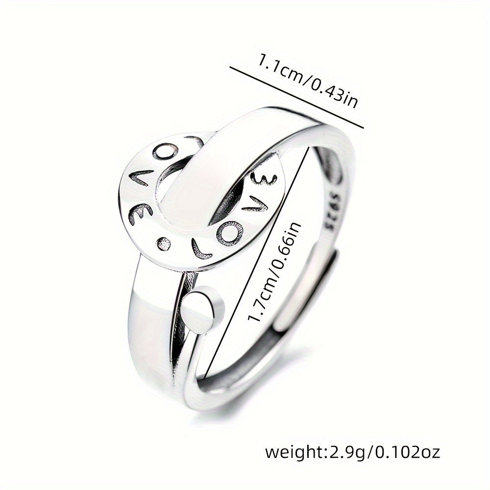 This s925 silver LOVE letter circle couple ring is a versatile and fashionable accessory weighing approximately 2.9g. Perfect for holidays or anniversaries.
