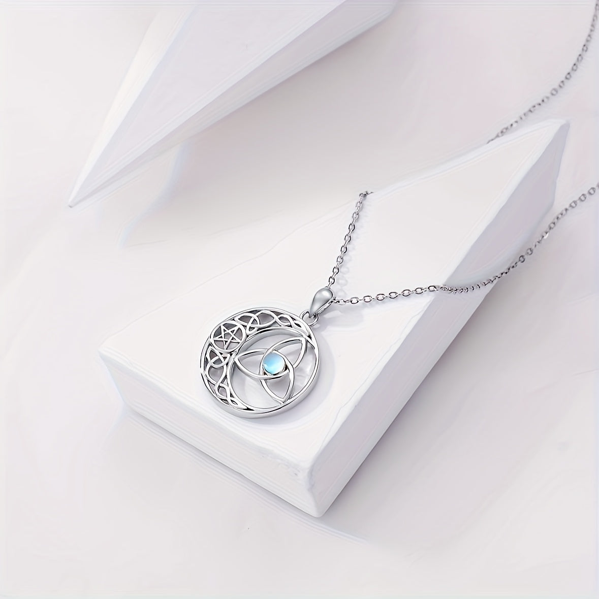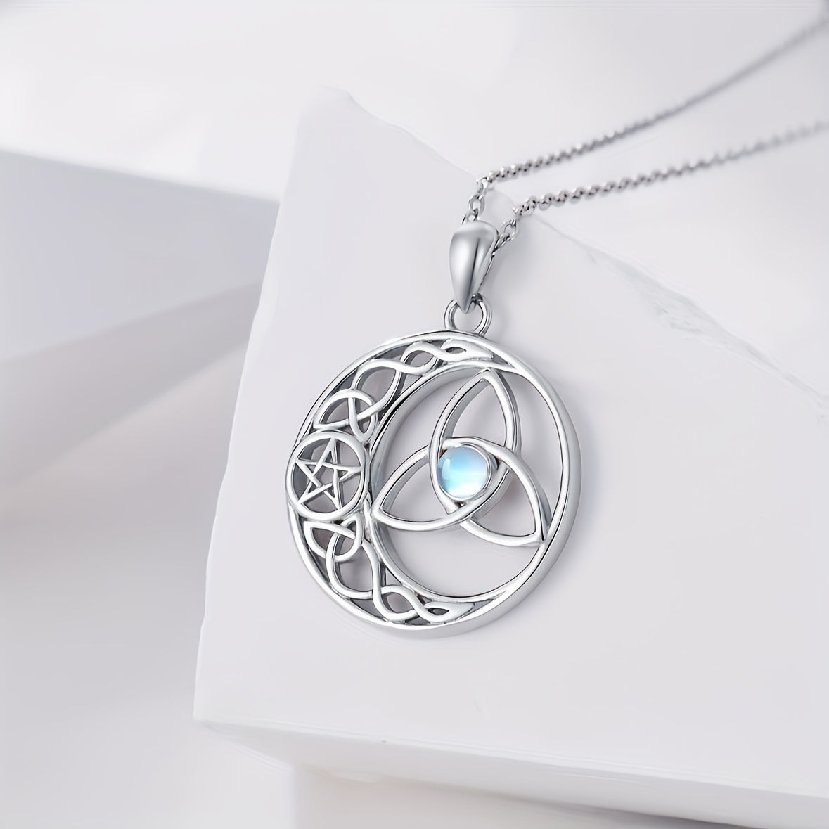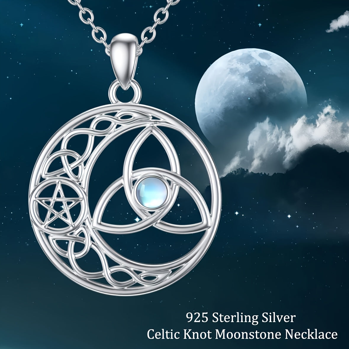 This stylish women's necklace is made of 925 silver, weighs 4g, and features a moonstone Celtic infinity symbol and moon design. It's perfect as a gift for a girl.