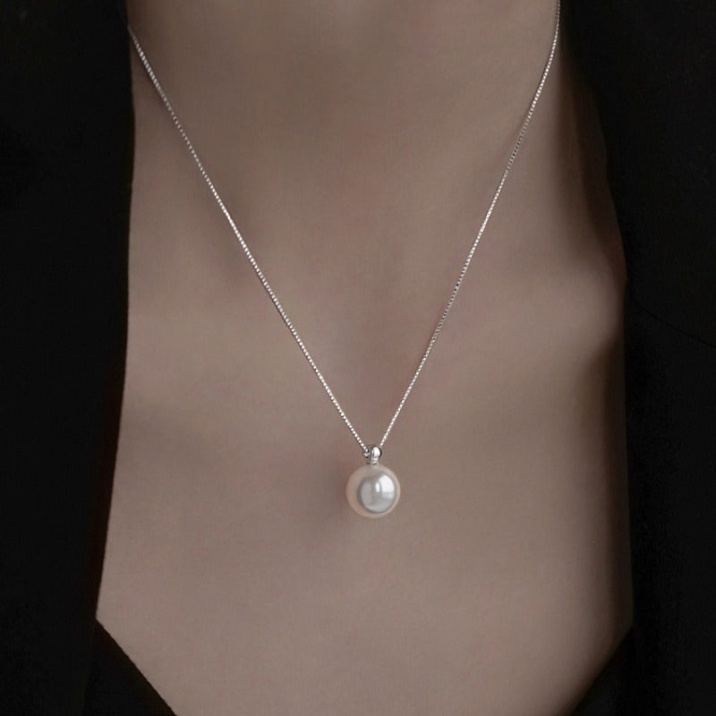 This S925 silver necklace features a light synthetic pearl and is perfect for adding a touch of elegance to any outfit.