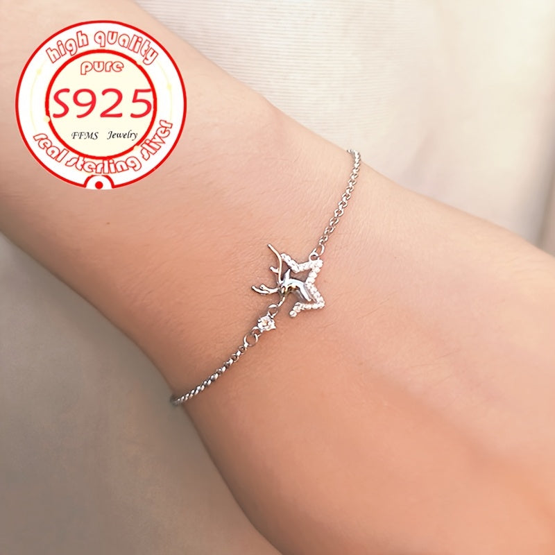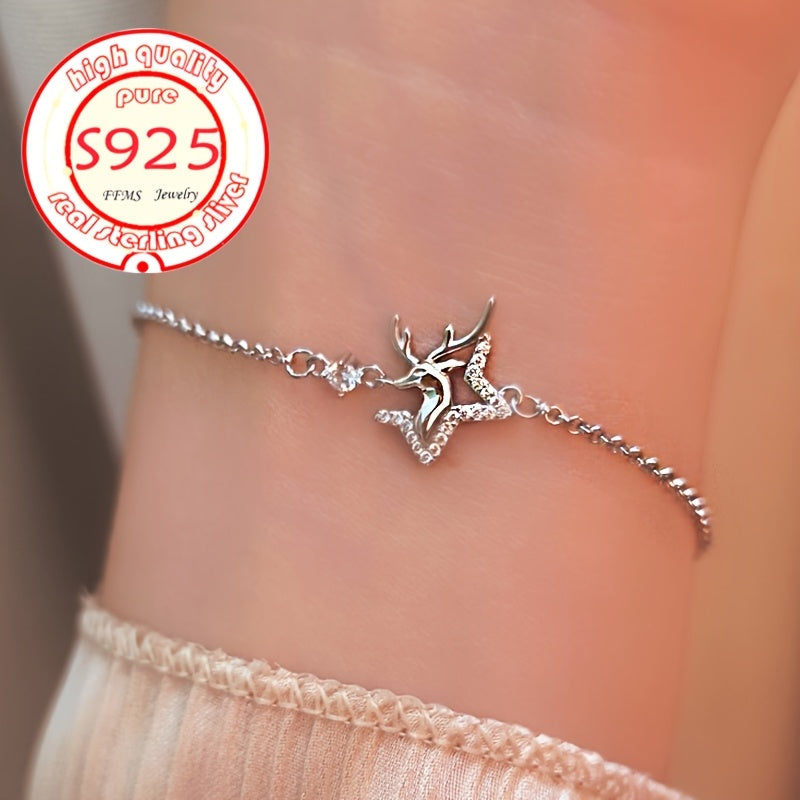 This sterling silver reindeer bracelet features zirconia, weighs 3.6g, and is ideal for daily wear. Perfect as a gift for women.