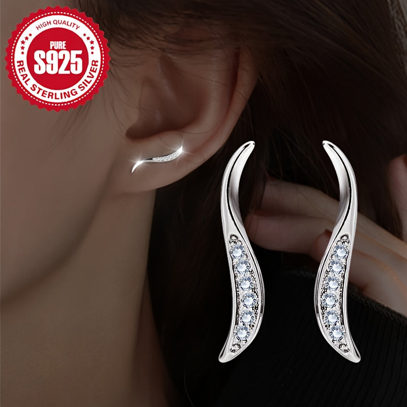 S925 Silver S-Shaped Curve Earrings for Ladies