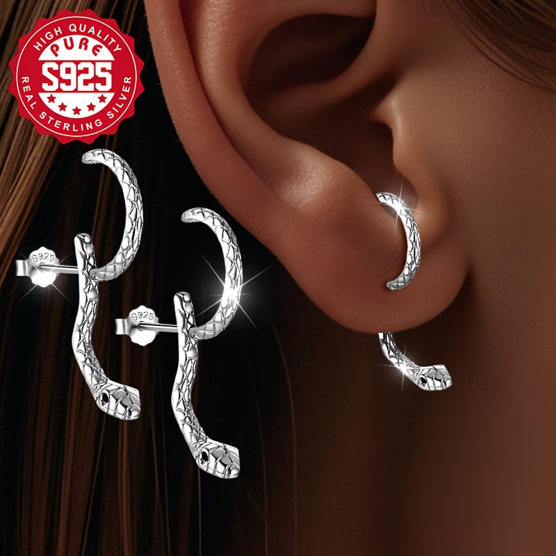 This pair pack of small snake earrings is made of S925 silver, suitable for party wear. Featuring a special personality retro style, these earrings are a good choice for those with low allergies.