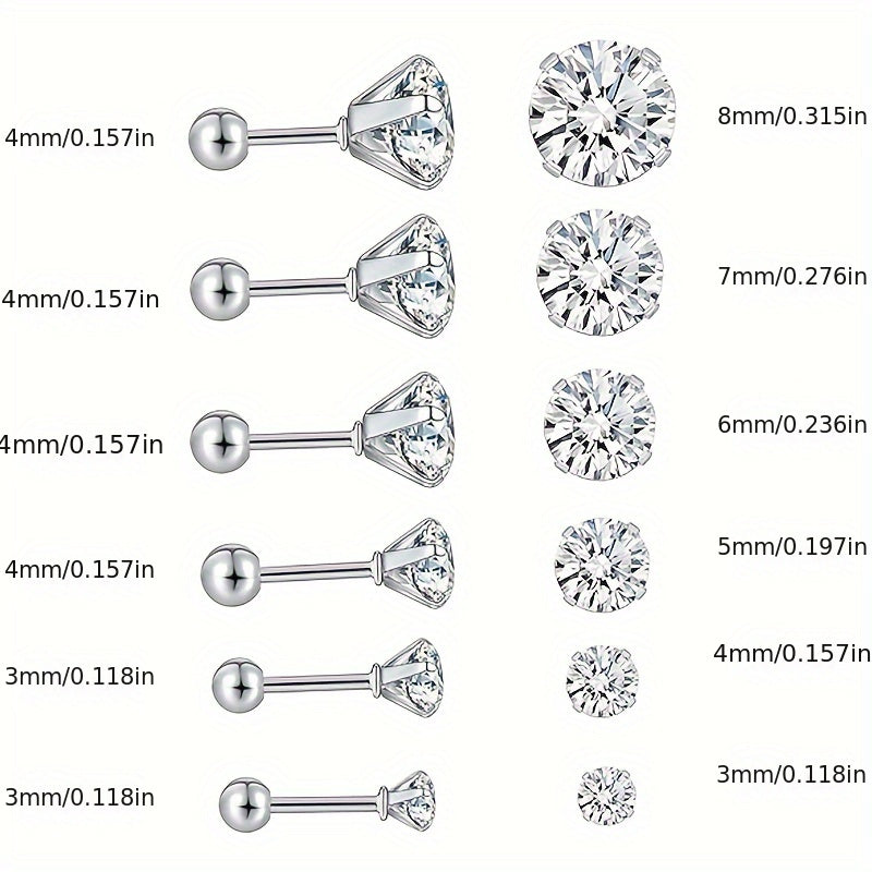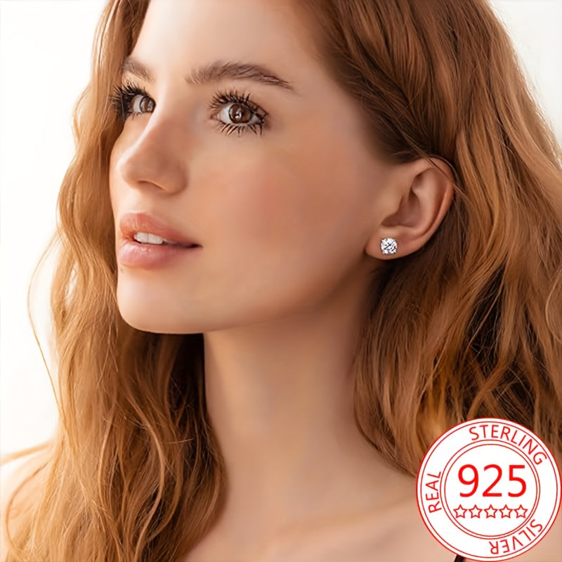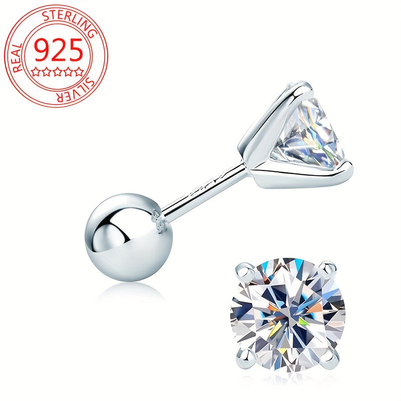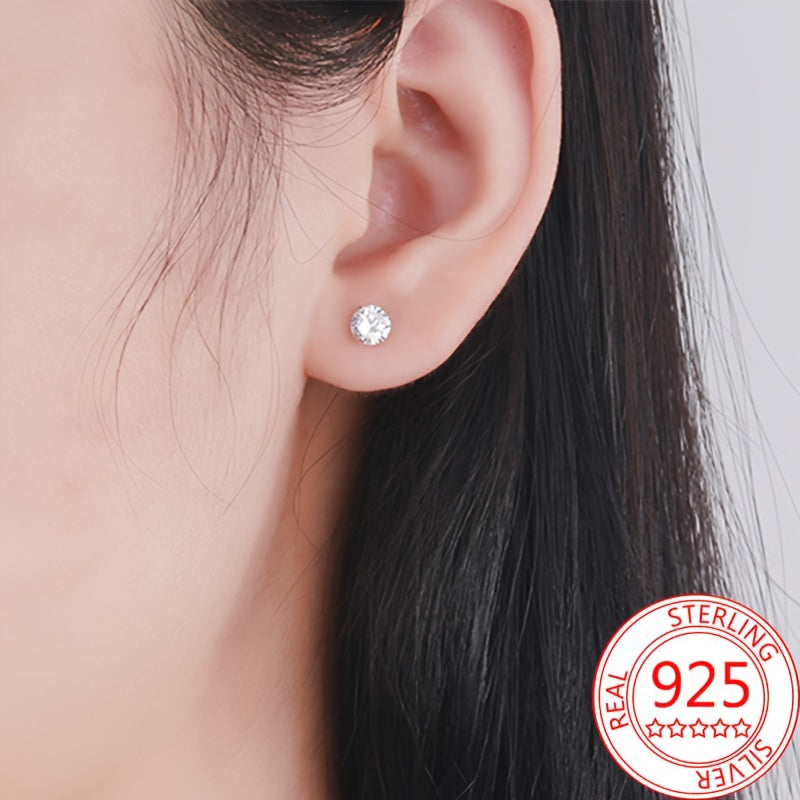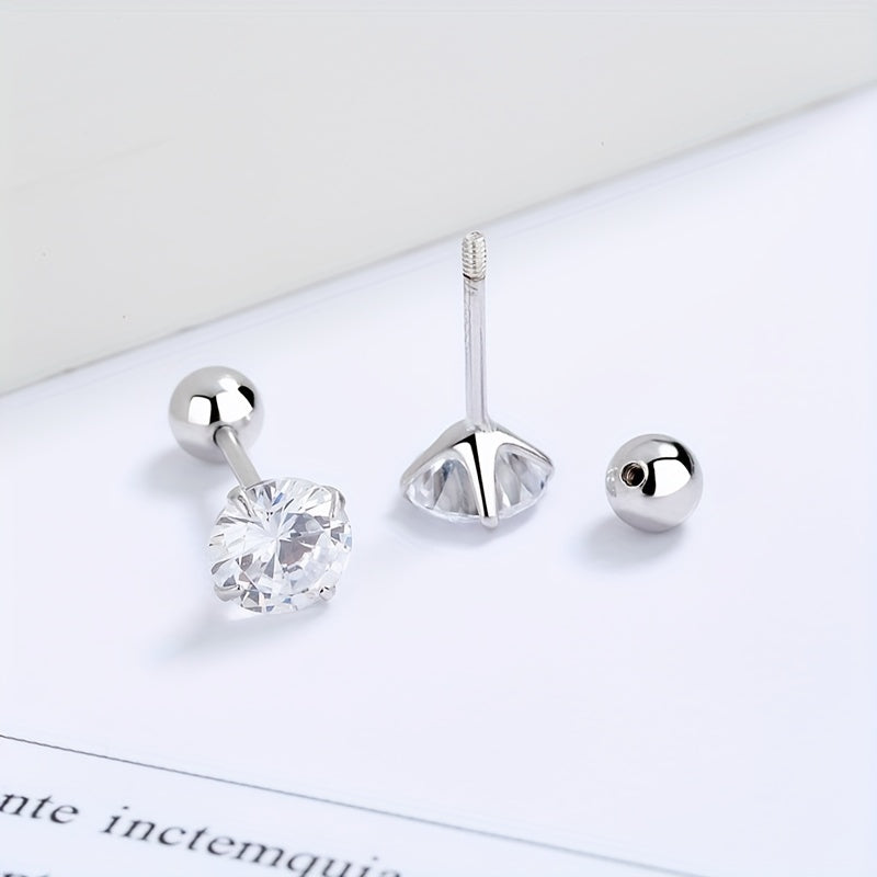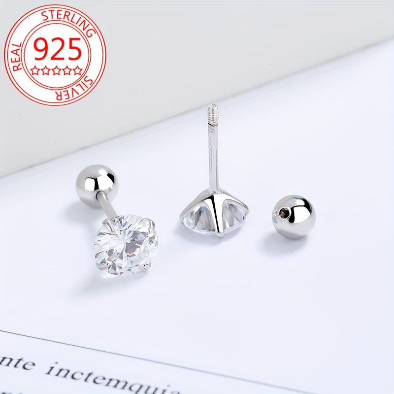 Elegant and fashionable S925 silver synthetic Zirconia ear bone studs with four prong round bead thread female screw buckle design.
