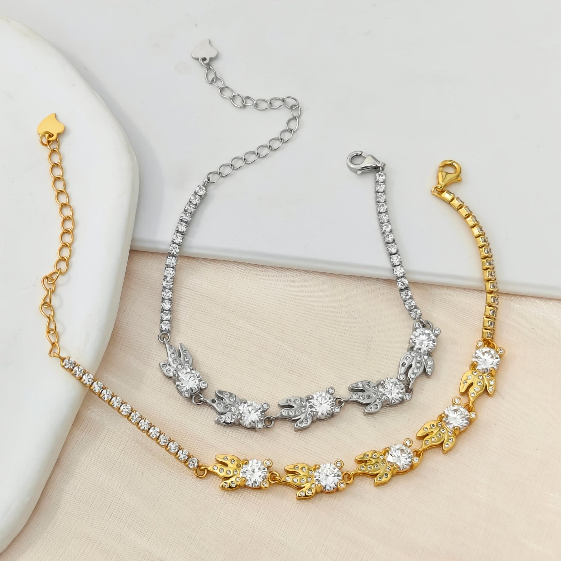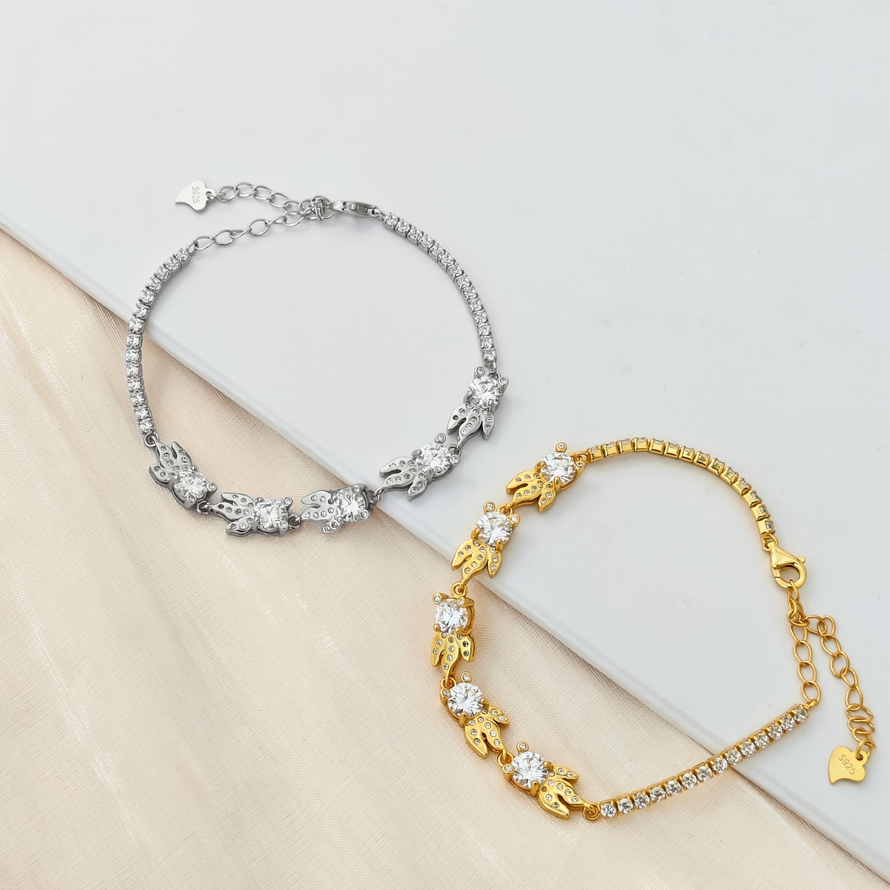 Add a touch of glamour to your outfits with this stunning S925 silvery goldfish bracelet. The bracelet is inlaid with a total of 2.5CT moissanite, making it a perfect accessory for parties, gatherings, dates, and holidays.