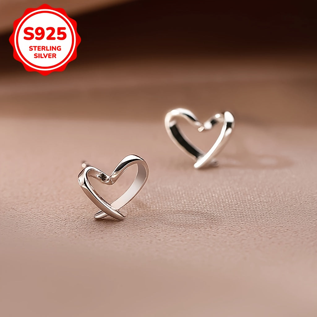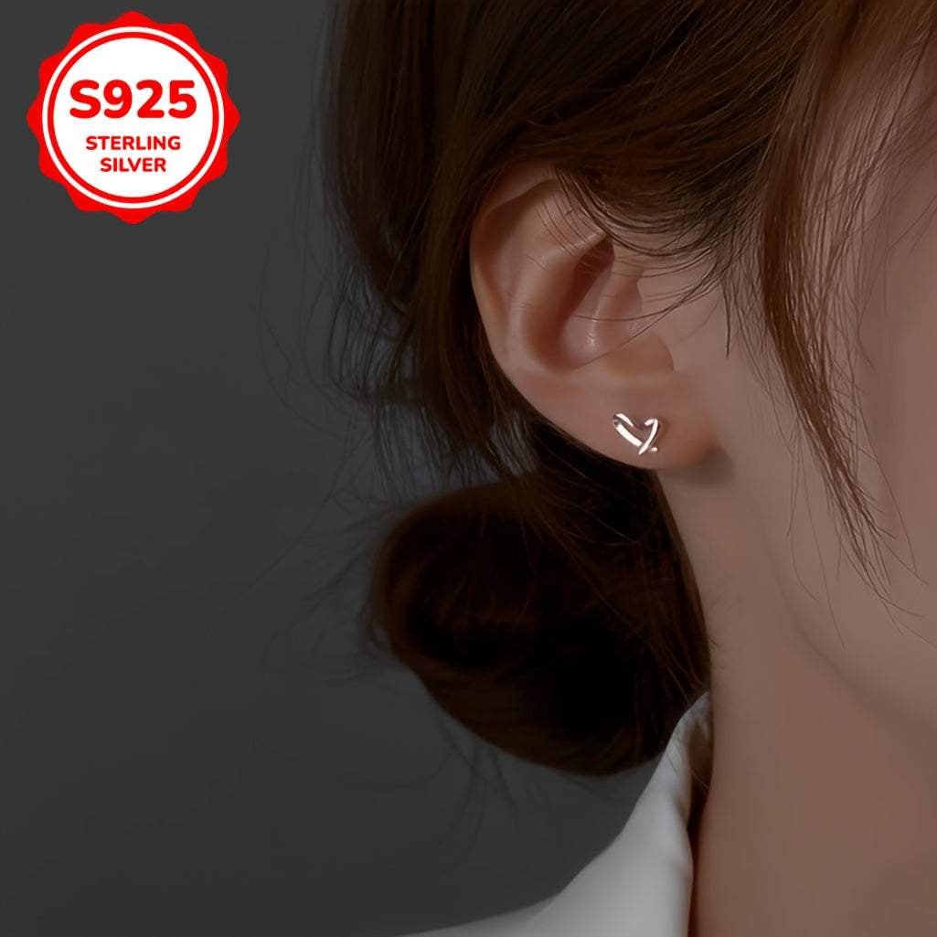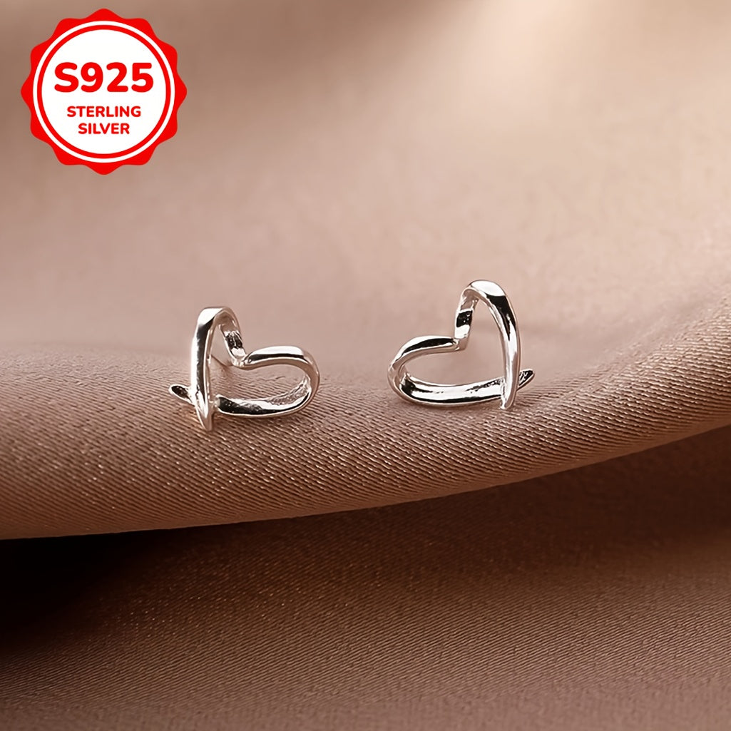 S925 Silvery Hollow Heart Earrings for Women Gift