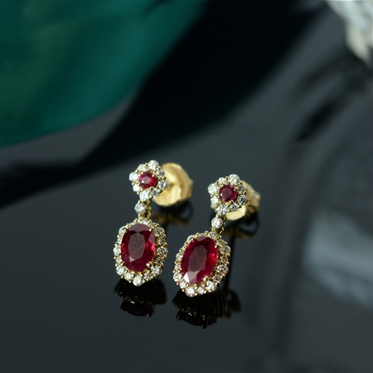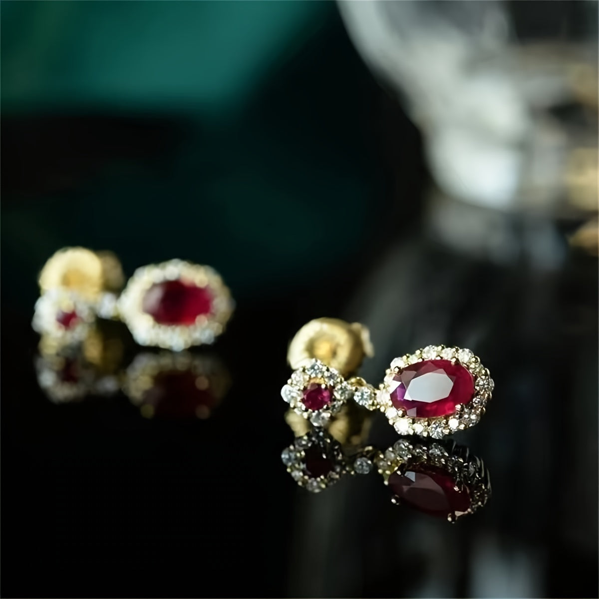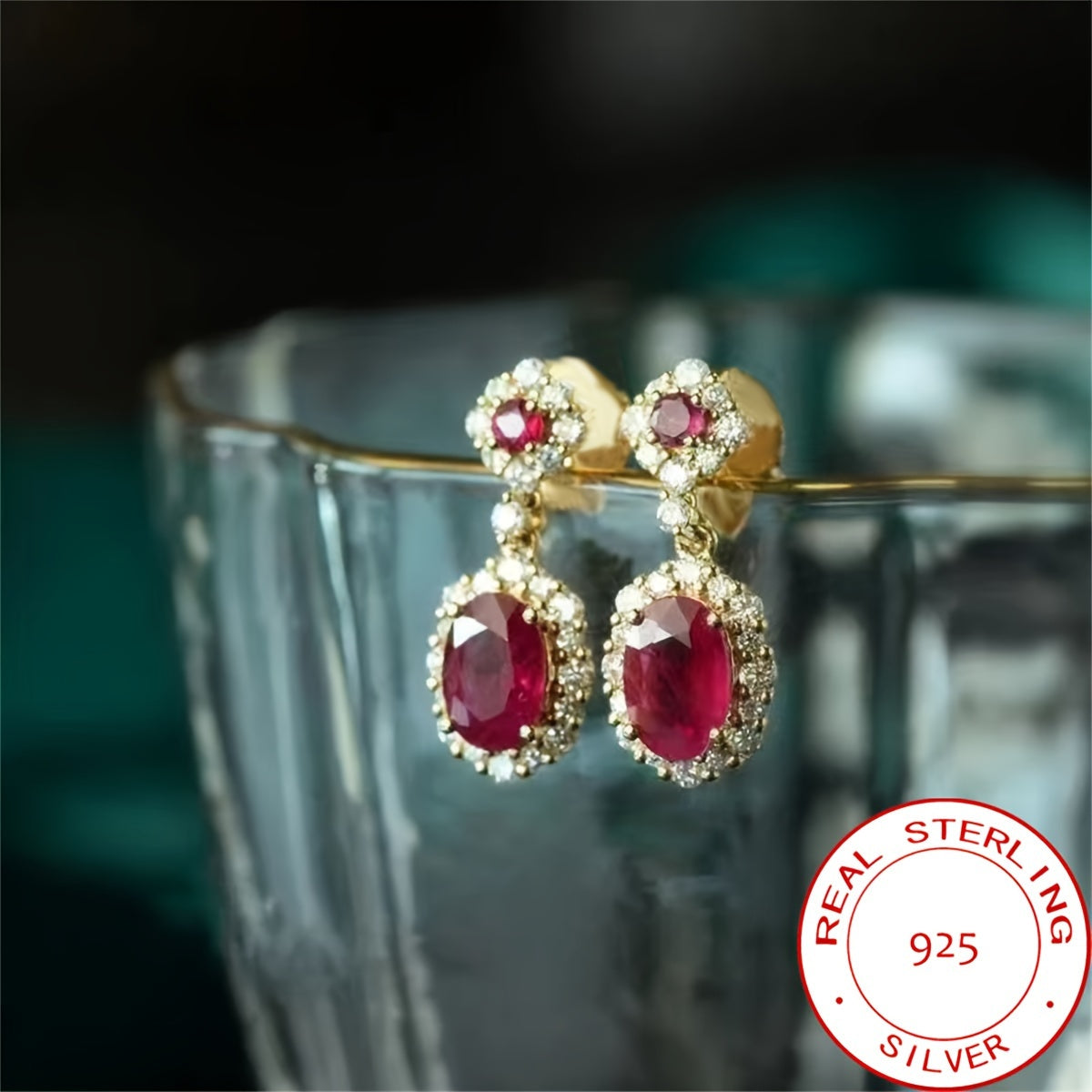 These elegant S925 silvery earrings feature imitation rubies and are perfect for women with a strong temperament.